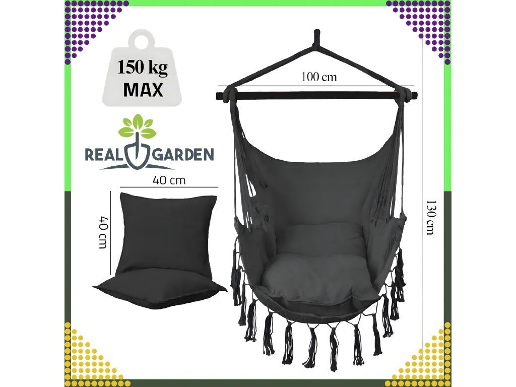 Moderní, krásná a pohodlná houpací síť vám zajistí nezapomenutelný odpočinek. Nezabírá mnoho místa a skvěle se hodí jako závěsné křeslo do interiéru, které dodá šarm vašim interiérům, ale také venku na zahradě, terase nebo balkóně a na výletech.