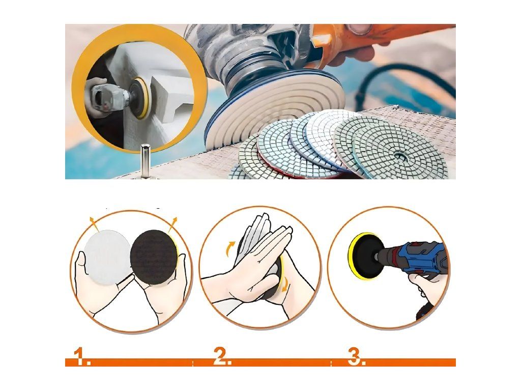 Kotouče jsou ideální pro leštění gresu, keramických dlaždic a přírodního kamene.