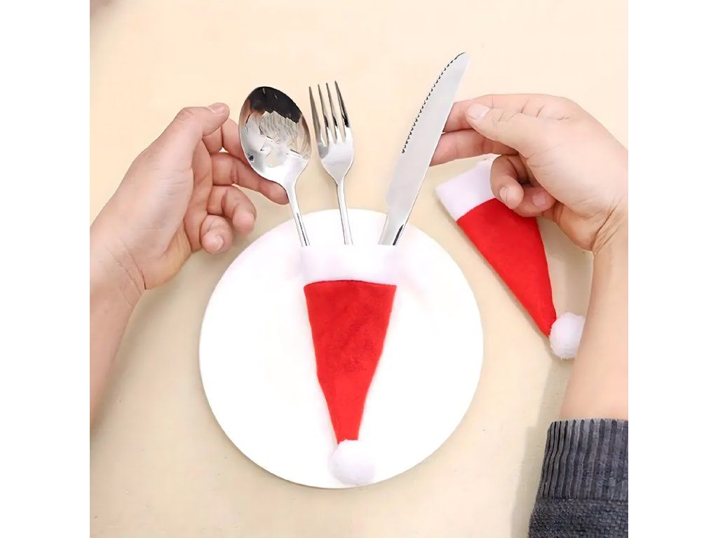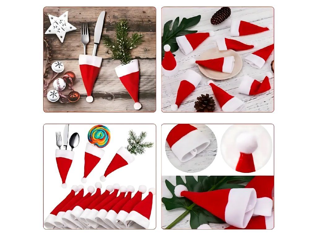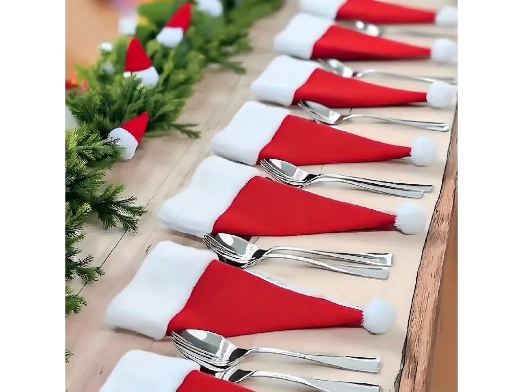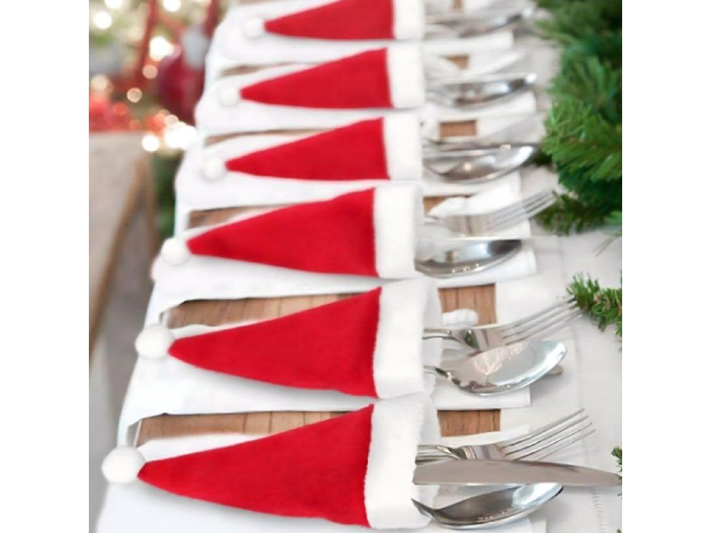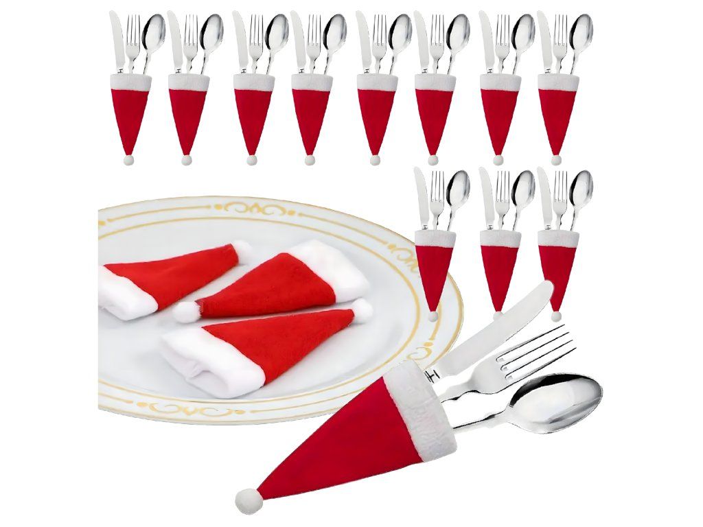 12x pouzdra na příbory Vánoční obaly Obal na Vánoce Santova čepice