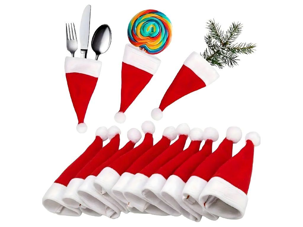 12x Vánoční pouzdra na příbory Vánoční obaly Vánoční obal Čepice Santa Clause
