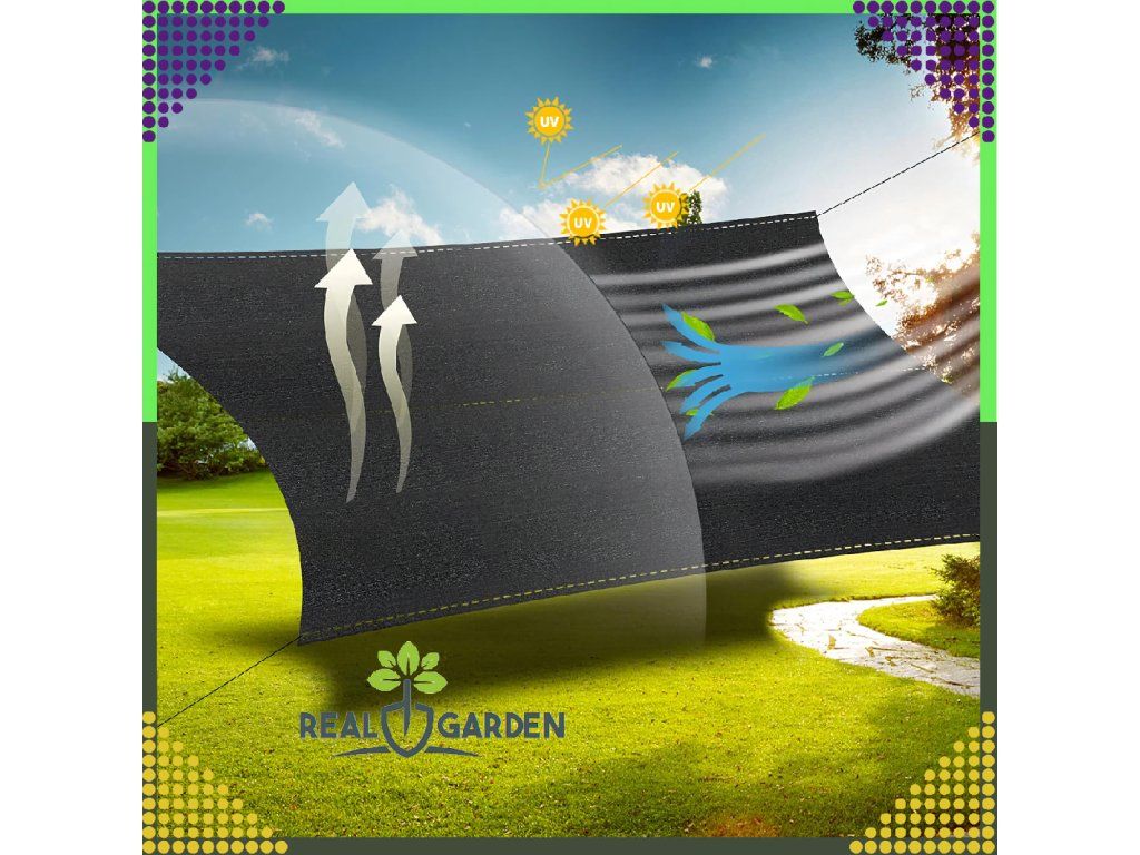 Síť zajišťuje 60% zastínění a účinně chrání před sluncem a větrem.