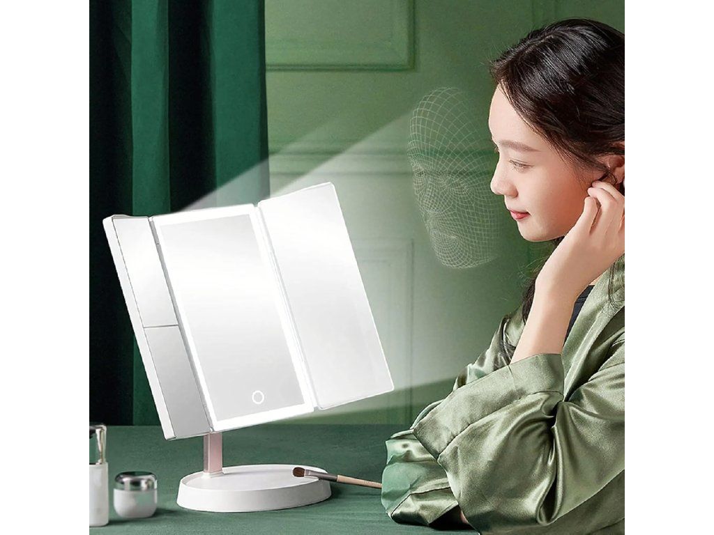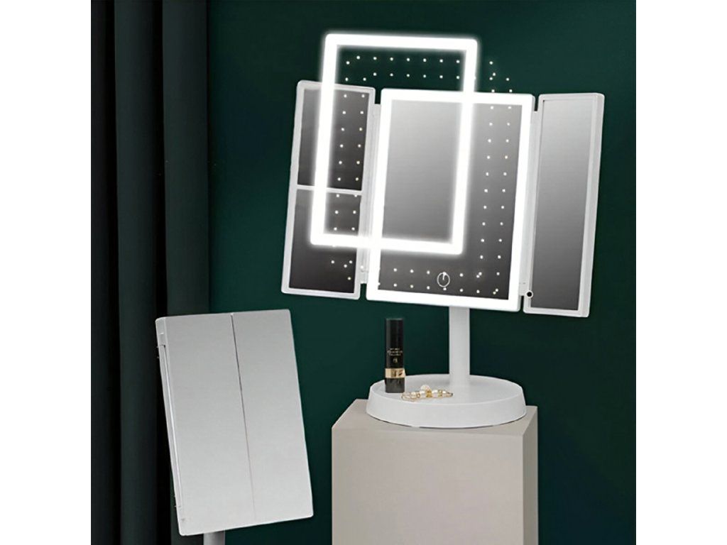 Kosmetické zrcátko s LED podsvícením, skládací zrcátko na líčení x3