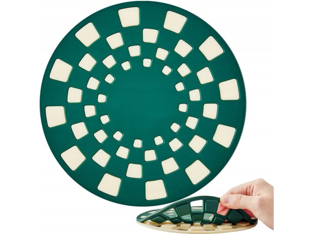 Praktická a pevná silikonová podložka je nepostradatelným kuchyňským doplňkem, který účinně chrání desky a stoly před horkým nádobím. Díky své žáruvzdornosti je ideální jako podstavec pro hrnce, pánve, konvice, a dokonce i plechy na pečení vytažené přímo z trouby. Jeho moderní geometrický design je nejen poutavý, ale také zlepšuje odvětrávání tepla.