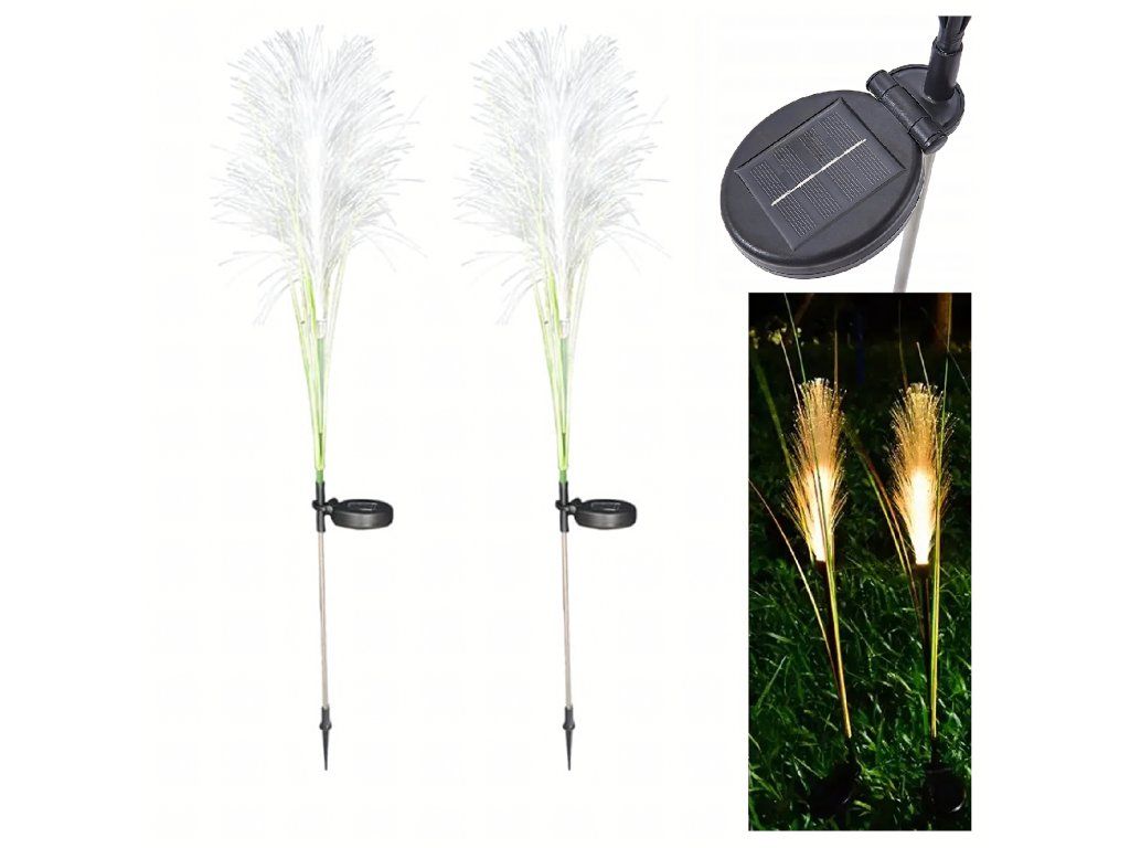 2x solární zahradní lampa do země, dekorativní pampová tráva, LED panel 85 cm