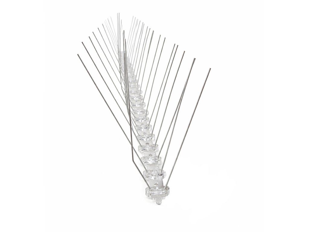 Husté rozmístění 40 hrotů na 50 cm účinně zabraňuje přistávání a usazování ptáků na chráněných plochách.