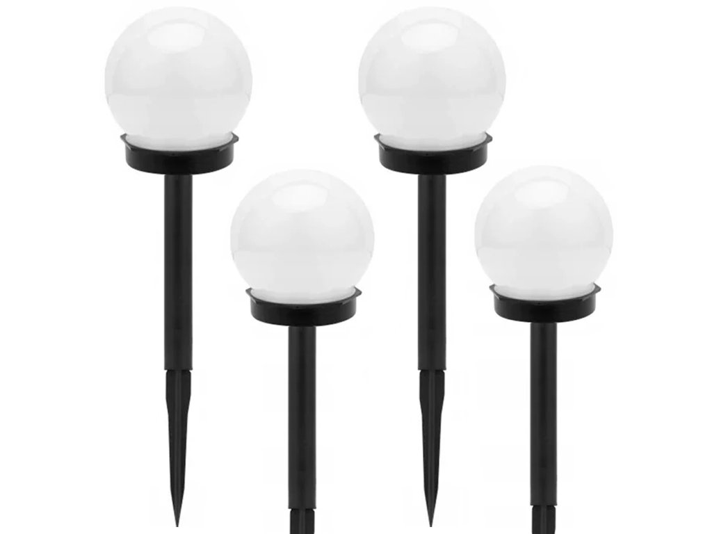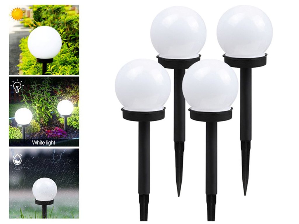 4x solární zahradní lampa, bílá koule, senzor soumraku, 10 cm