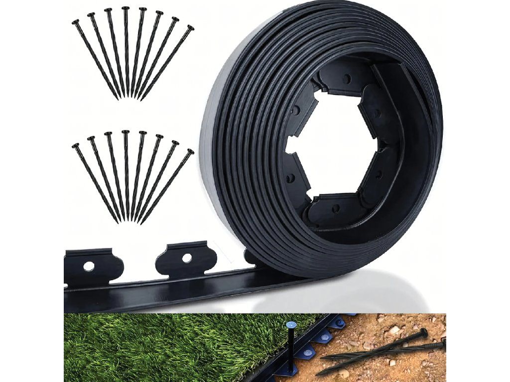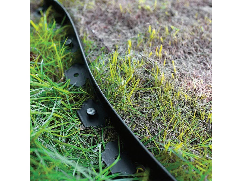 Pružné obrubníky lze přizpůsobit libovolnému tvaru a sada obsahuje 30 kotev zajišťujících stabilní upevnění.