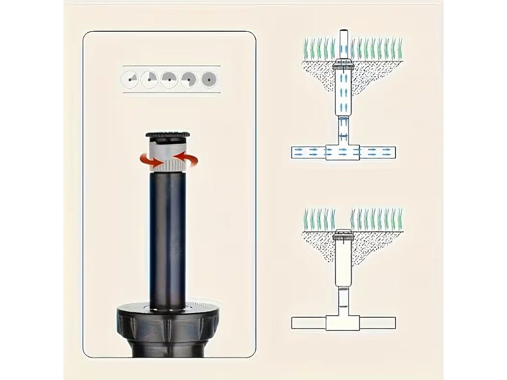 5x Zahradní postřikovač statický, výsuvný, otočný, rotační 360° 5,7 m