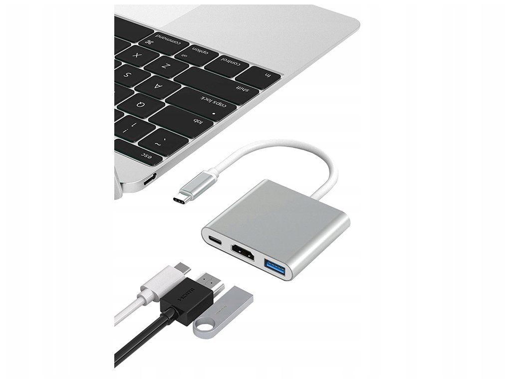 Adaptér 3v1 hub usb-c usb 3.0 hdmi 4k