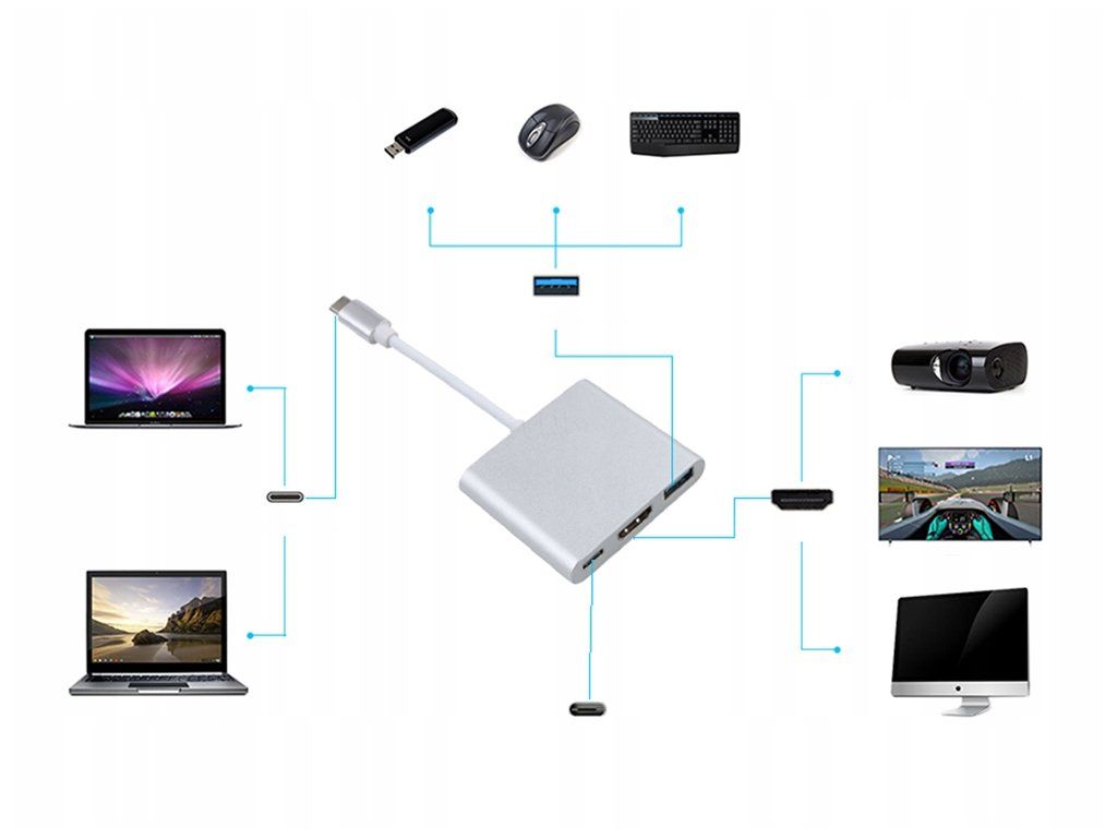 Vzhledem k rostoucí miniaturizaci hardwaru má stále více nových notebooků a přenosných počítačů omezený počet portů. S adaptérem USB-C na USB/HDMI/USB 3.1 je možné k počítači připojit více zařízení Umožňuje snadné připojení notebooku k televizoru, paměťovému zařízení USB nebo zařízením s výstupem USB.