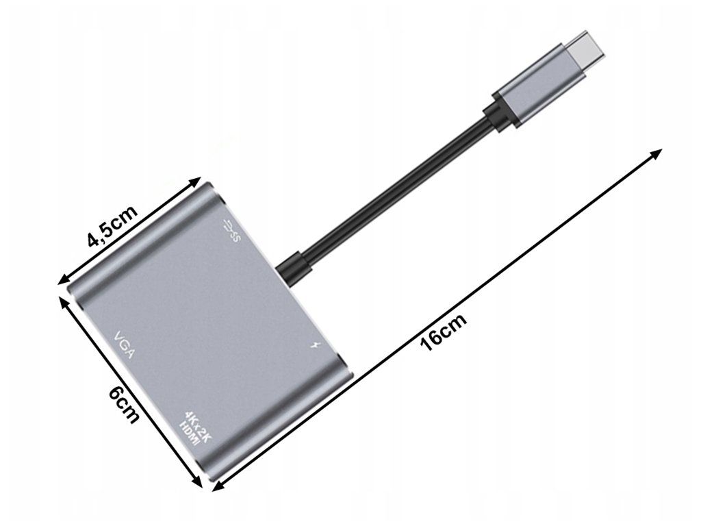 Praktický a multifunkční adaptér USB-C je ideálním řešením pro ty, kteří potřebují současně používat porty HDMI, VGA, USB 3.0 a USB-C PD. Díky němu můžete snadno připojit počítač, notebook, tablet nebo smartphone k monitoru, televizoru nebo projektoru. Adaptér podporuje současný výstup obrazu prostřednictvím portů HDMI (až 4K) a VGA (Full HD). Kvalitní zpracování a hliníkový kryt zajišťují odolnost a elegantní design, který dokonale ladí s moderním elektronickým vybavením.