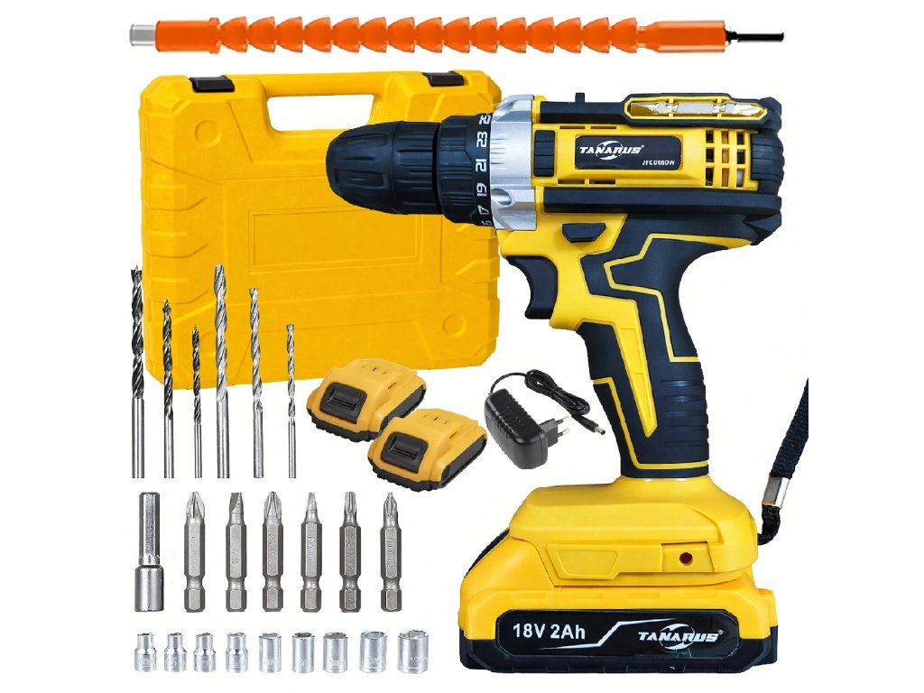 Akumulátorová vrtačka/šroubovák, kufřík, 2x akumulátor 18 V 2 Ah, LED + příslušenství