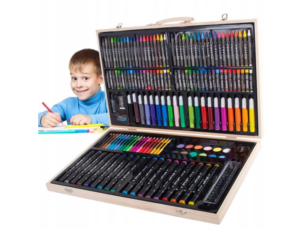 Kreslení a malování je mimořádně kreativní činnost, která rozvíjí fantazii, ale k realizaci svých nápadů a jejich přenesení na papír potřebujete správné malířské pomůcky. Sada obsahuje až 188 prvků, mezi kterými najdete: - kreslící potřeby pro malování: