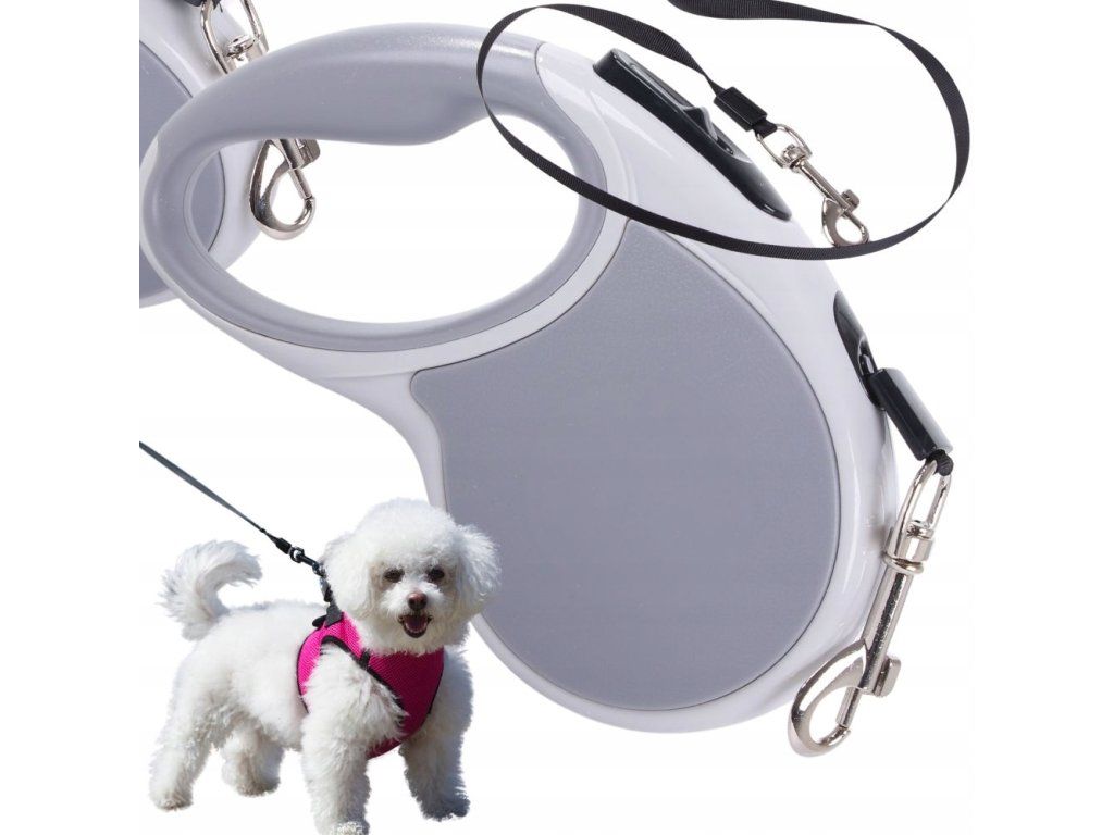 Automatické vodítko 5 m pro psa do 15 kg se zámkem, silné, dlouhé, šedé