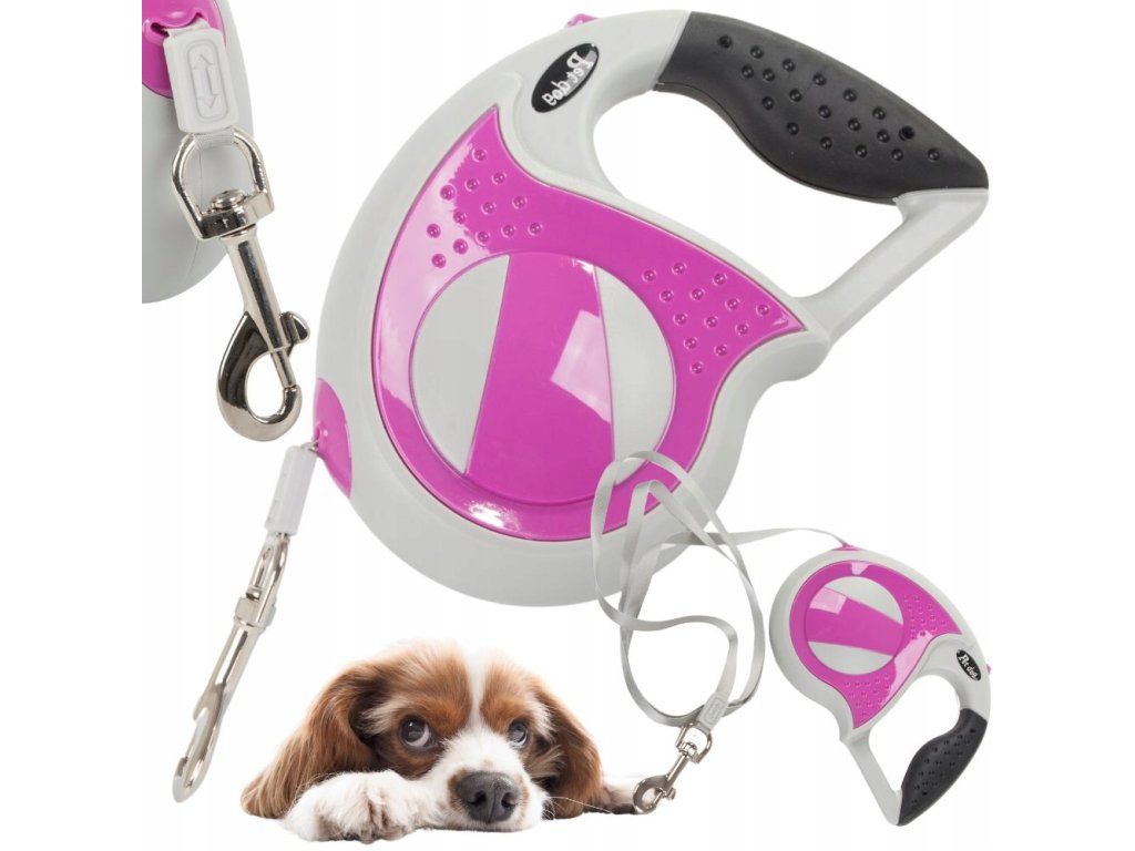 Automatické vodítko 5 m pro psa do 20 kg se zámkem, silné, dlouhé, růžové
