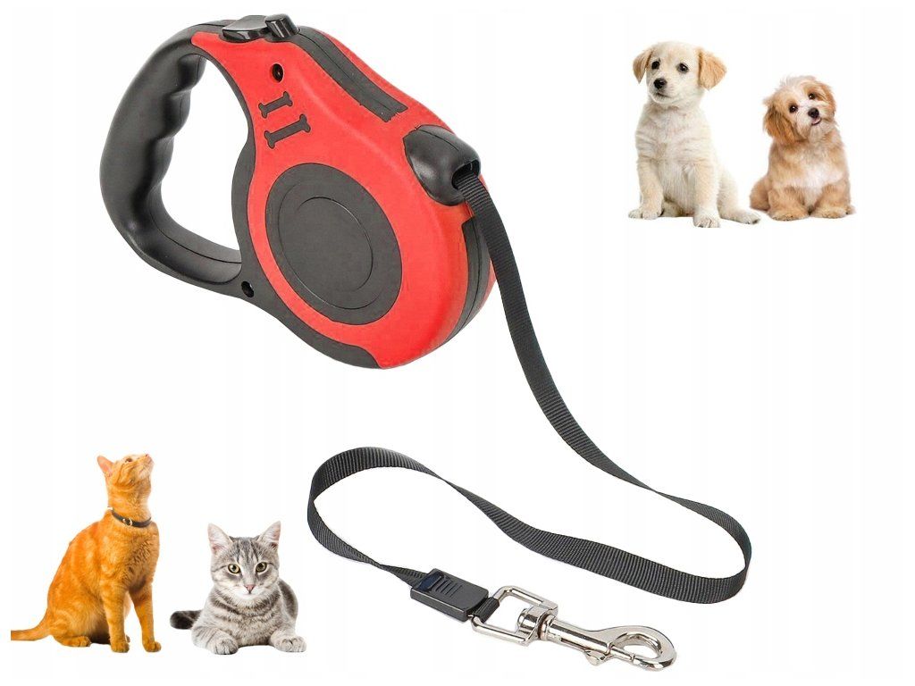 Automatické vodítko pro psy do 15 kg, silné, 5m, červené