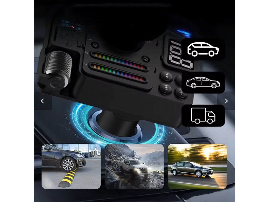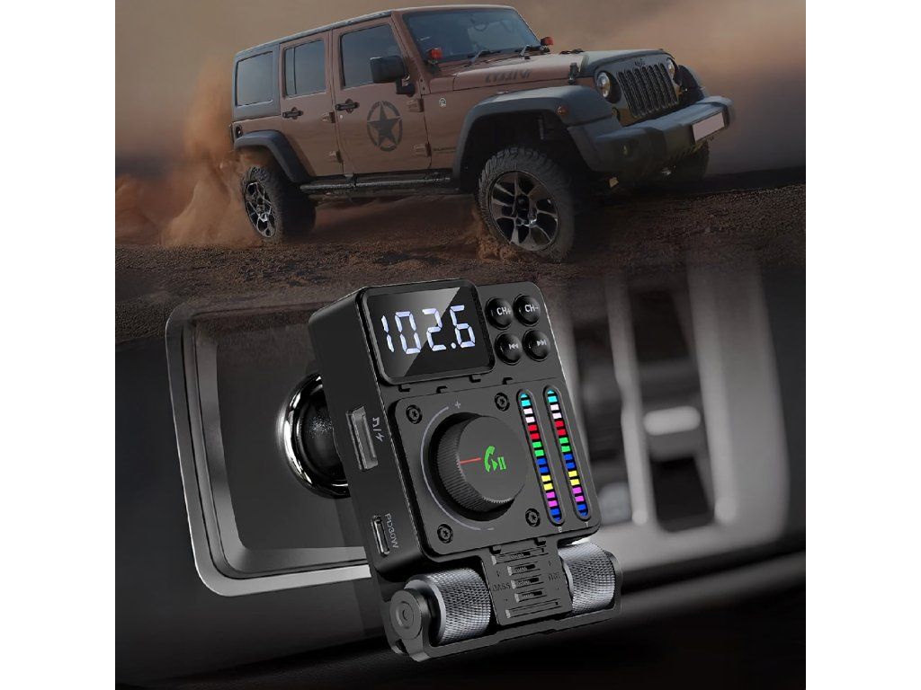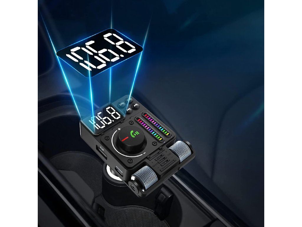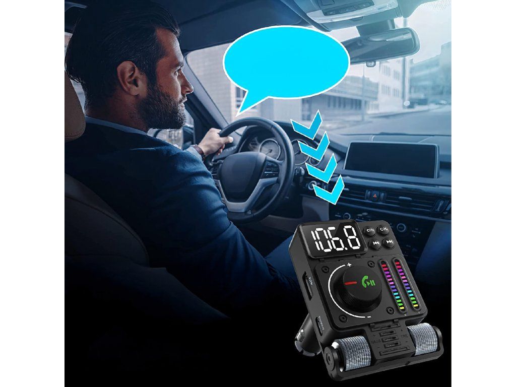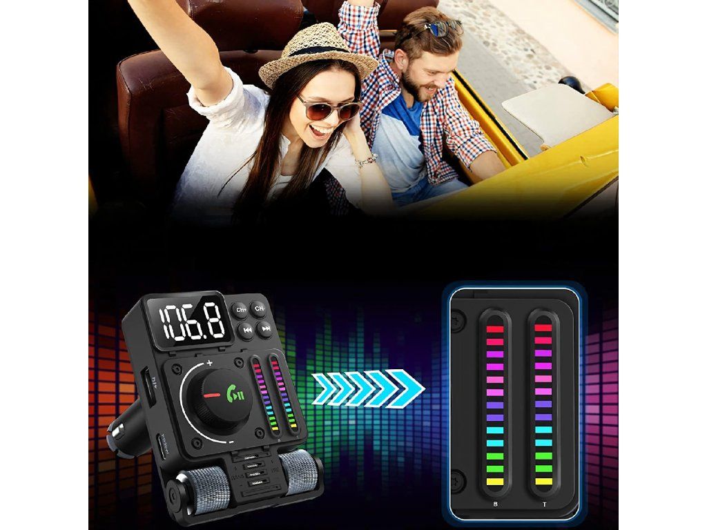 Multifunkční automobilový Bluetooth 5.3 vysílač s nabíjením PD 30 W, přehráváním hudby, čistými hovory přes hlasitý odposlech a barevným LED podsvícením – ideální způsob, jak si dopřát pohodlí a moderní technologii ve svém autě.