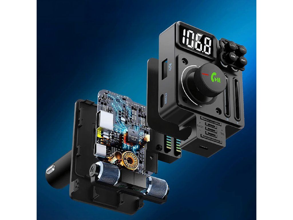 Autosíťový vysílač FM s Bluetooth 5.3, PD 30 W, nabíječka