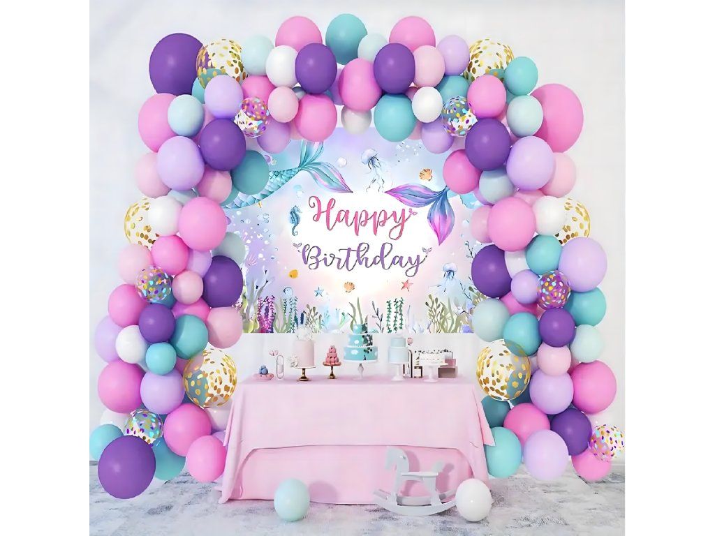 Balónková girlanda Balón Sada balónků Oblouk Narozeninové balónky Mořská panna 97 ks