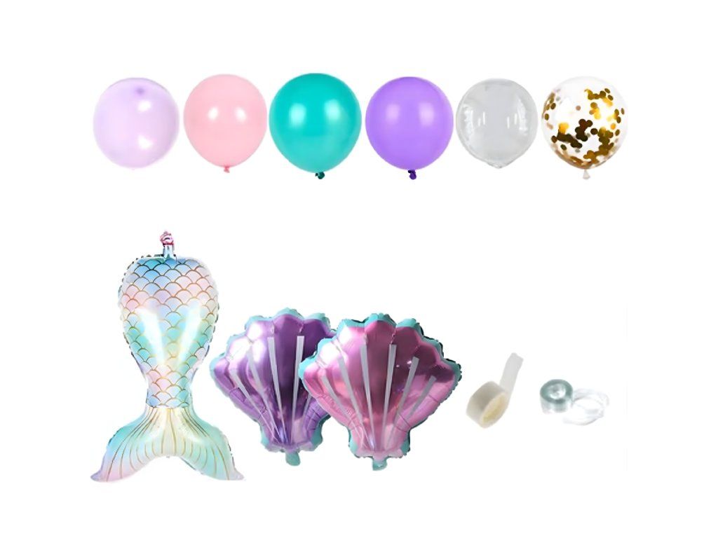 V sadě jsou balonky od 5" do 31,5", včetně velkého balonku ve tvaru ocasu mořské panny (80 cm).