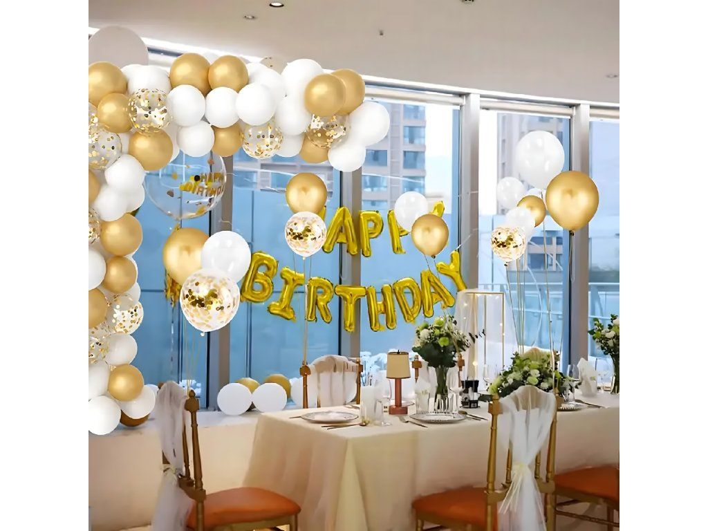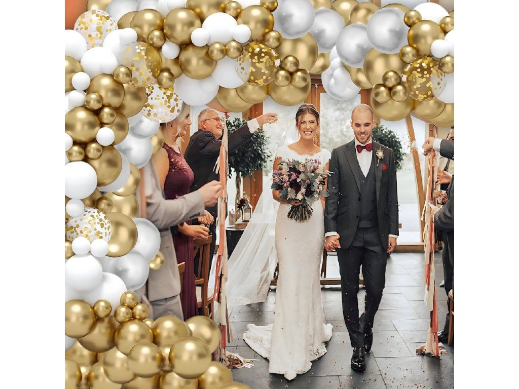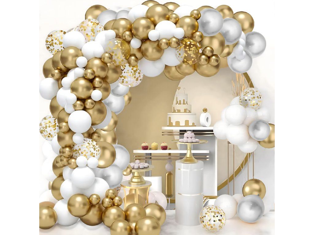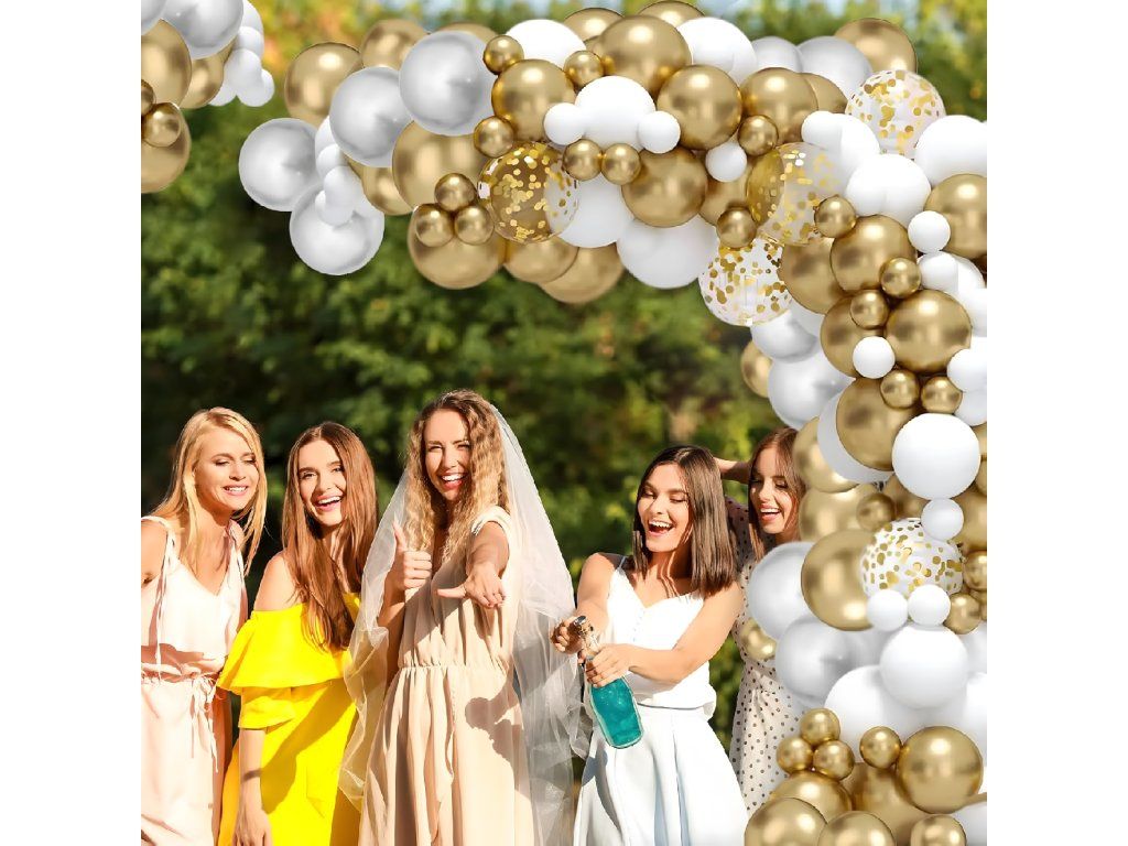 Balónková girlanda Sada balónků na narozeniny, svatbu, zlatá, bílá, 110 kusů
