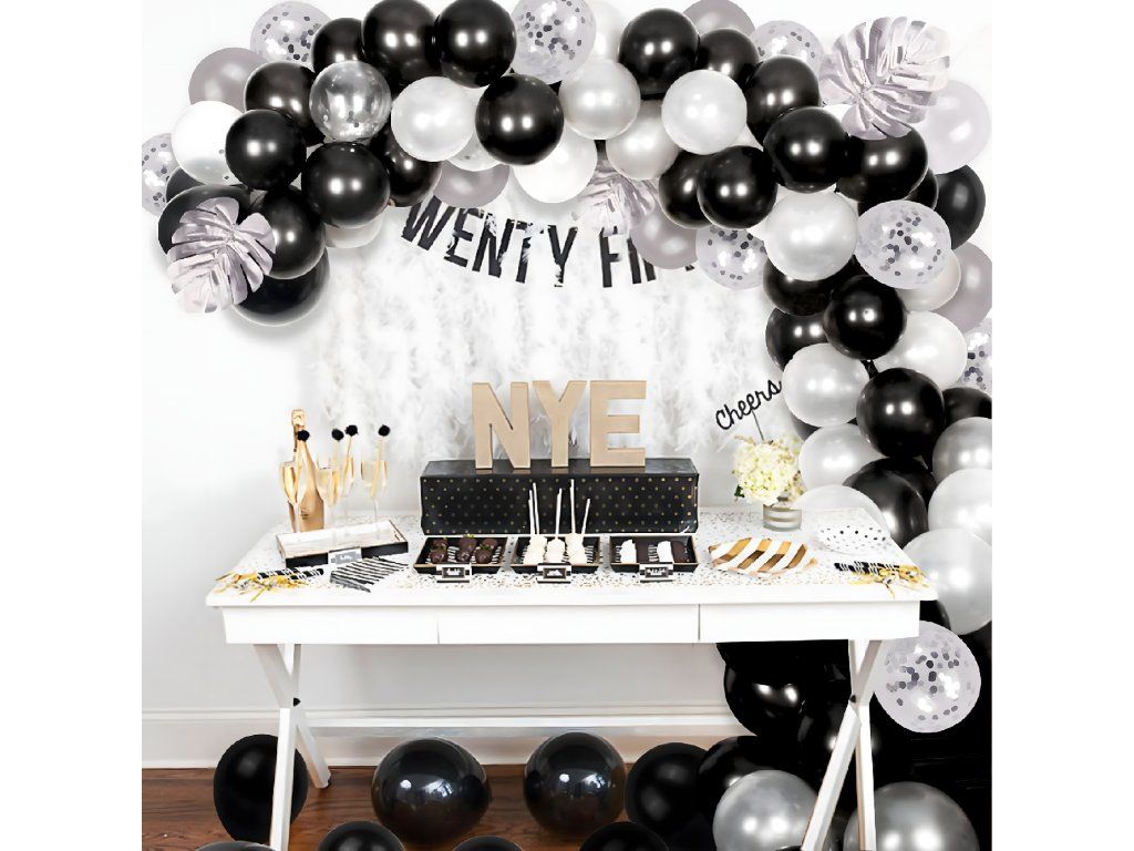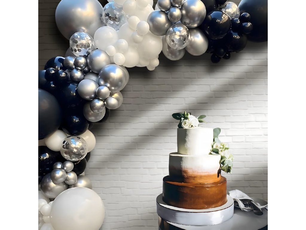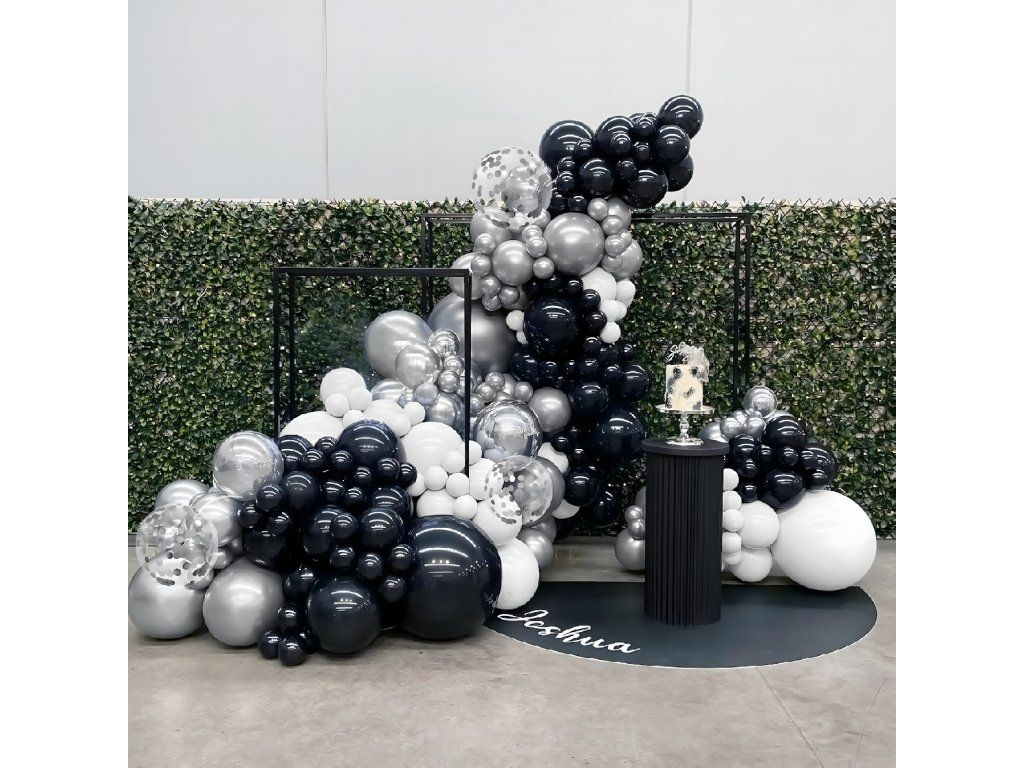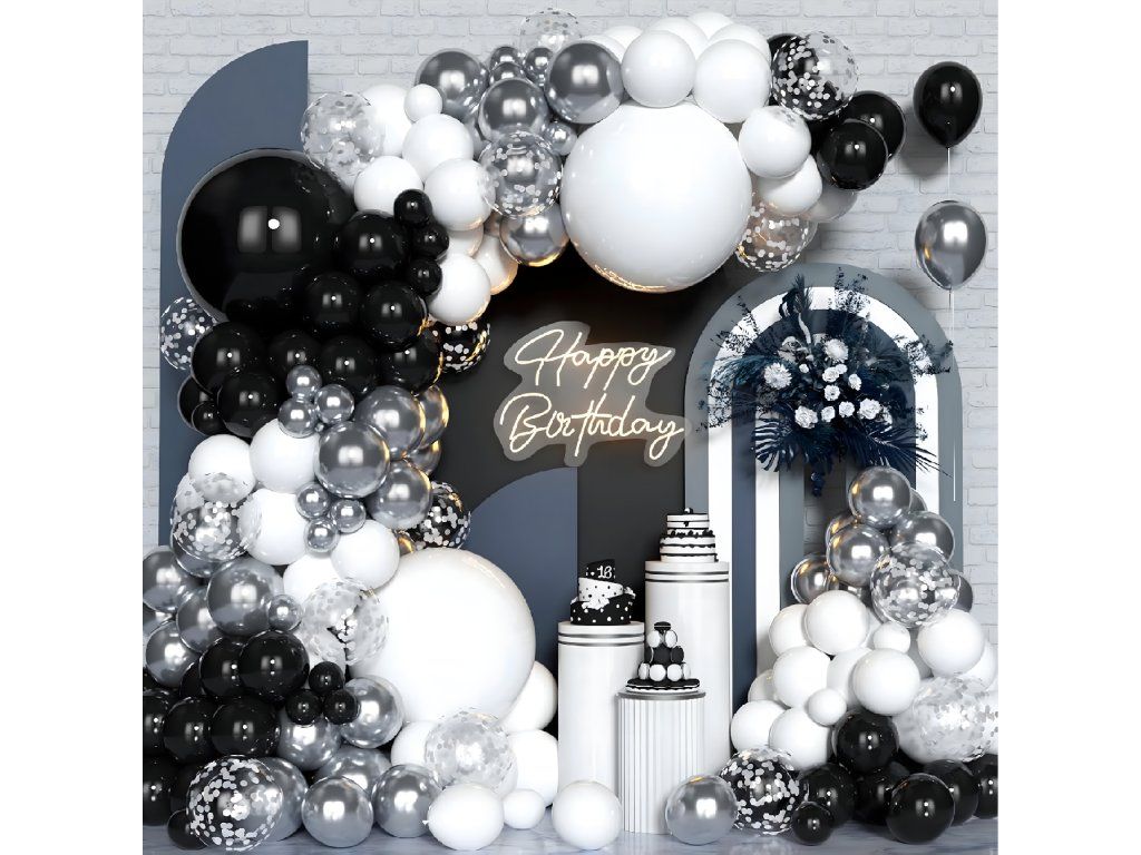 Balónková girlanda Sada balónků na narozeniny Černá Stříbrná Bílá 107 ks