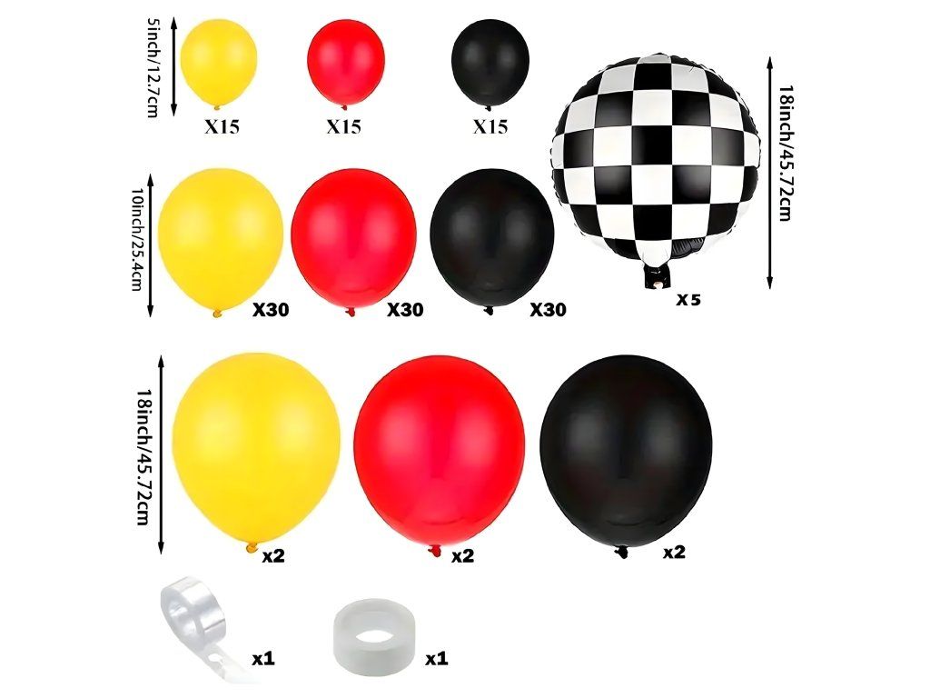 Balónková girlanda Sada balónků na narozeniny Závody Vlajka 148 ks