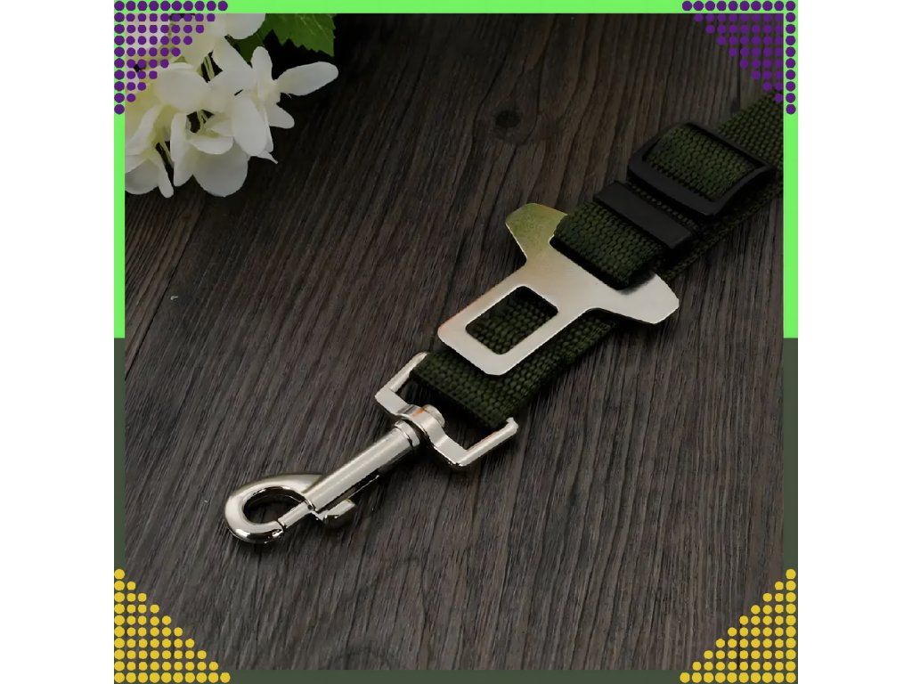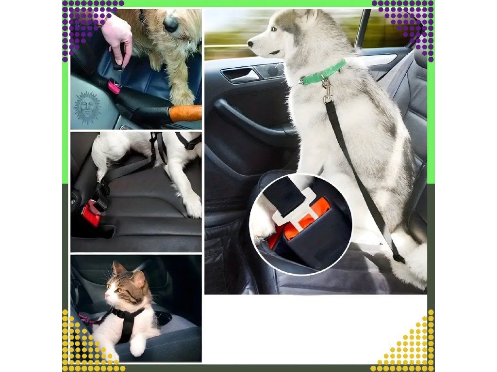 Bezpečnostní pás umožňuje bezpečně cestovat se psem na zadním sedadle bez nutnosti instalace dělicí mřížky. Pás se připevňuje k automobilovým postrojům nebo obojkům pomocí karabiny.