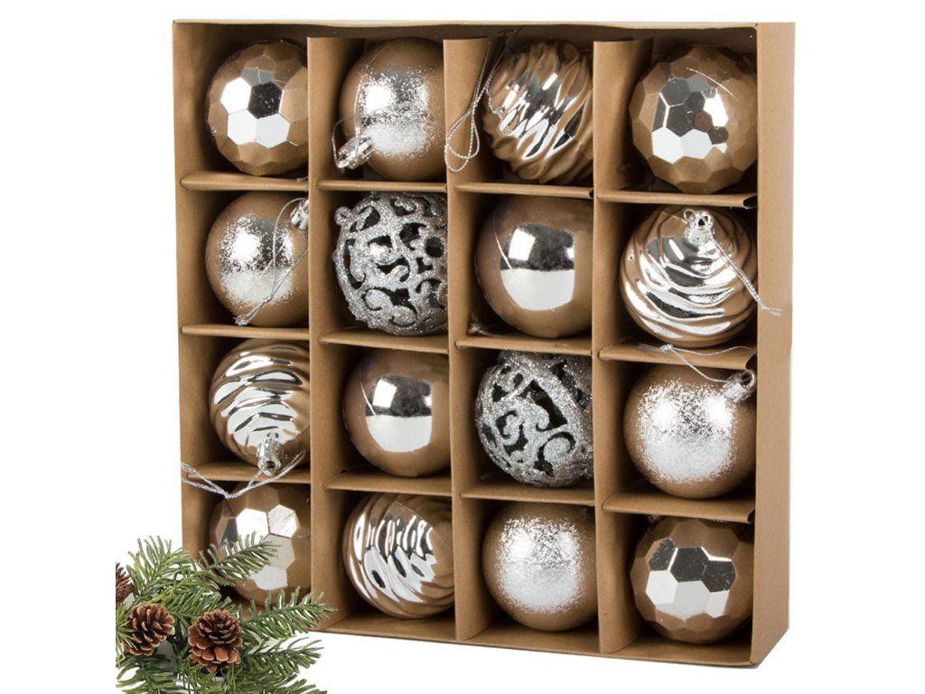 Sada vánočních ozdob 6cm, 16 ks, stříbrná