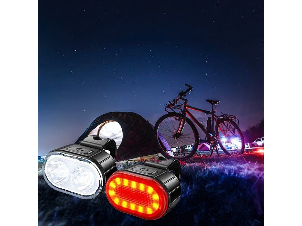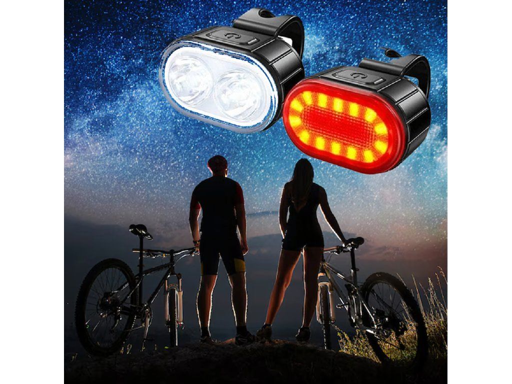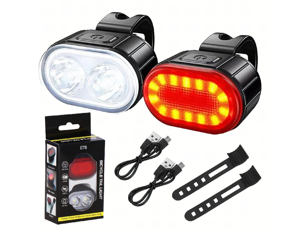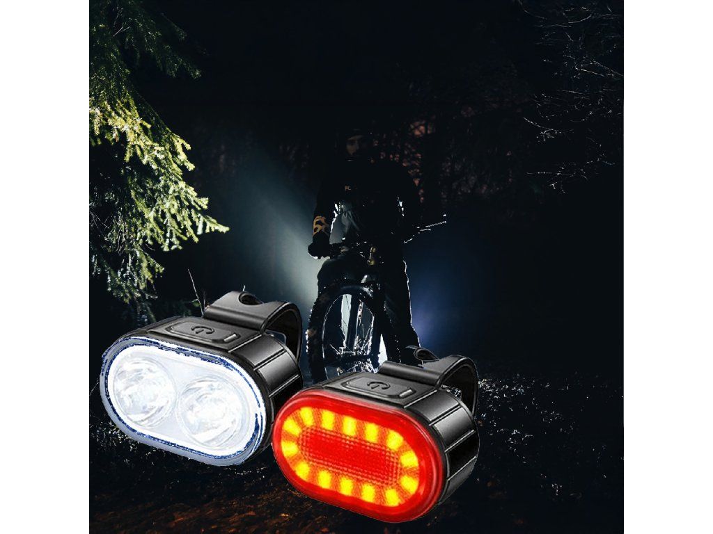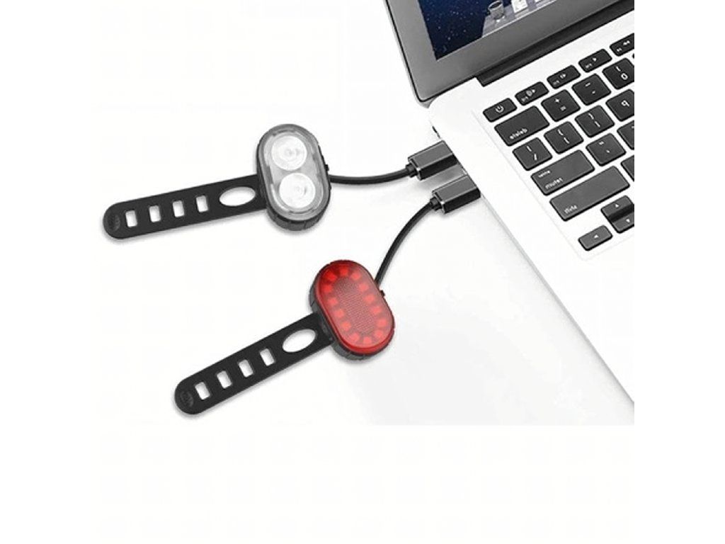 Cyklistické světlo LED přední a zadní na řídítka, silné, USB, 2 ks.