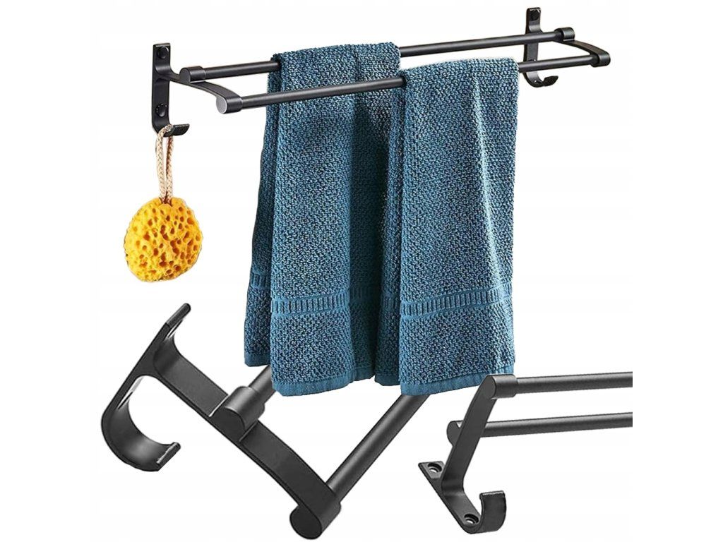 Dvojitý držák na ručníky je praktickým a stylovým řešením pro pohodlné uložení ručníků v koupelně.