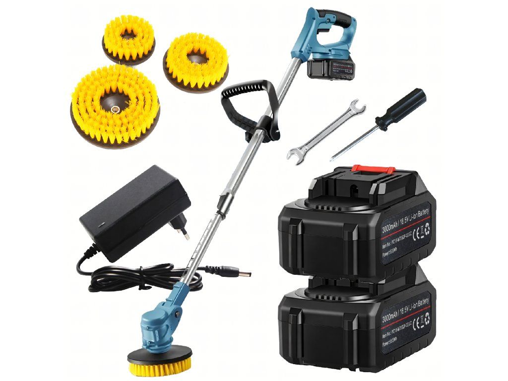 Elektrický akumulátorový rotační bezdrátový čisticí kartáč 2xAku