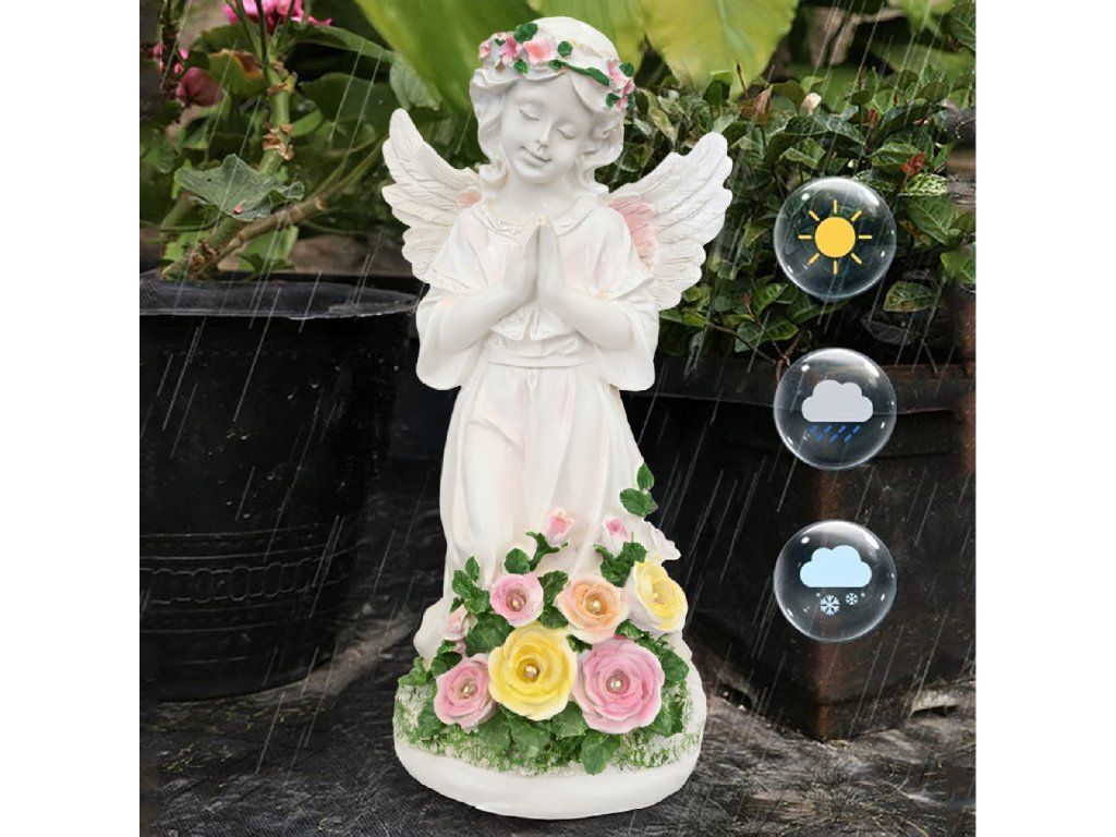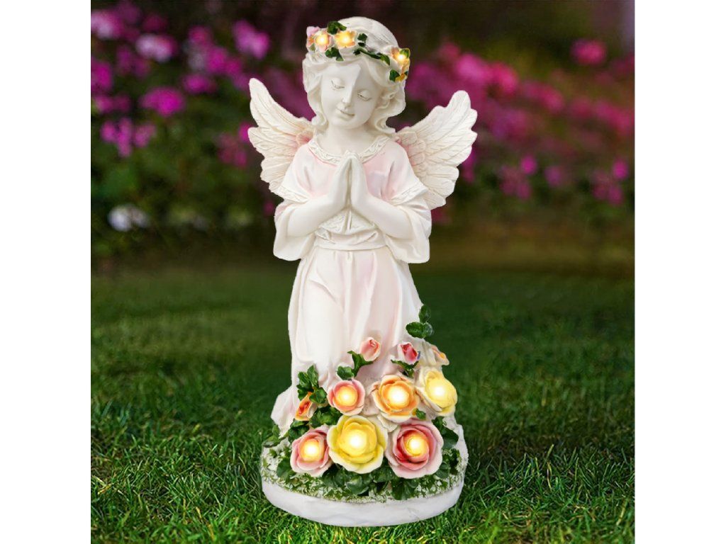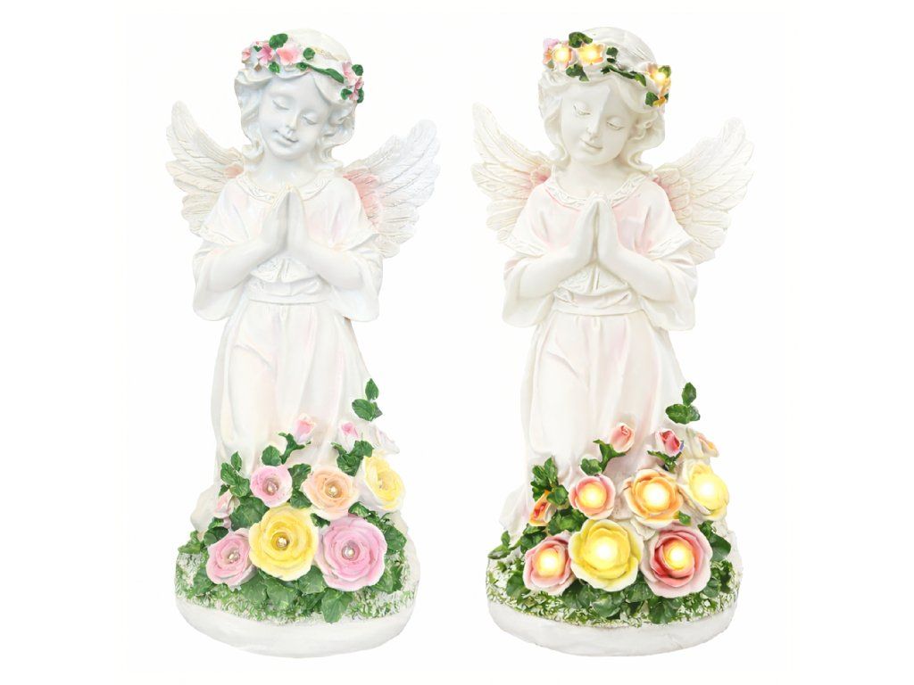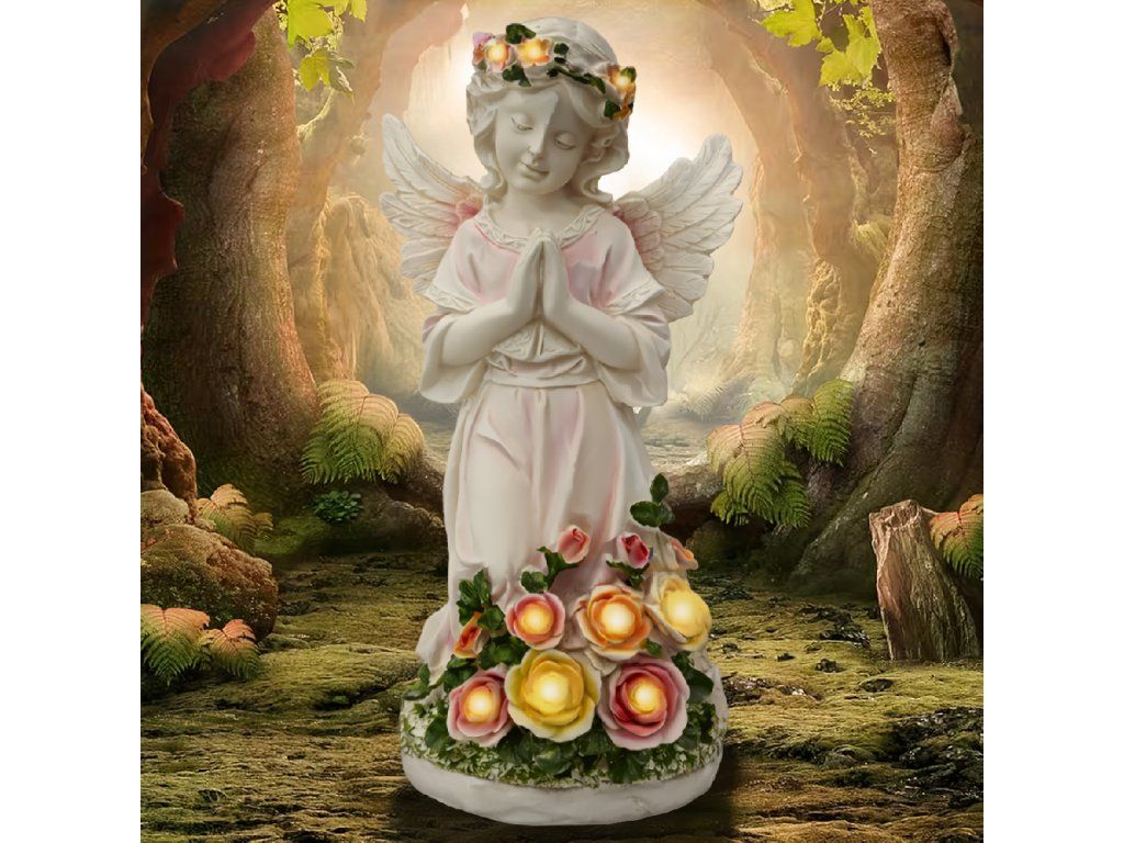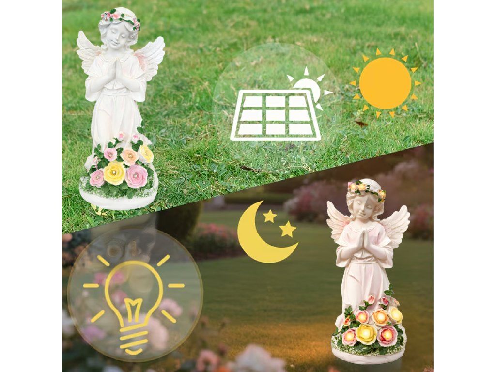 Figurka Svícen Anděl Dekorace Soška Andílek Solární LED do zahrady