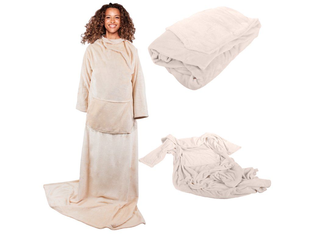 ☑️ Tovární nová deka s rukávy v béžové barvě.