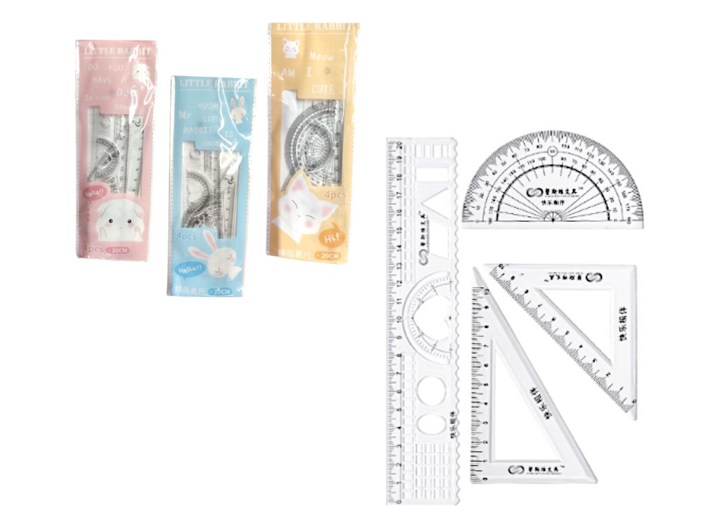 Geometrická sada 4 ks (pravítko 20 cm, 2x úhelník 10 cm, úhloměr 8 cm)