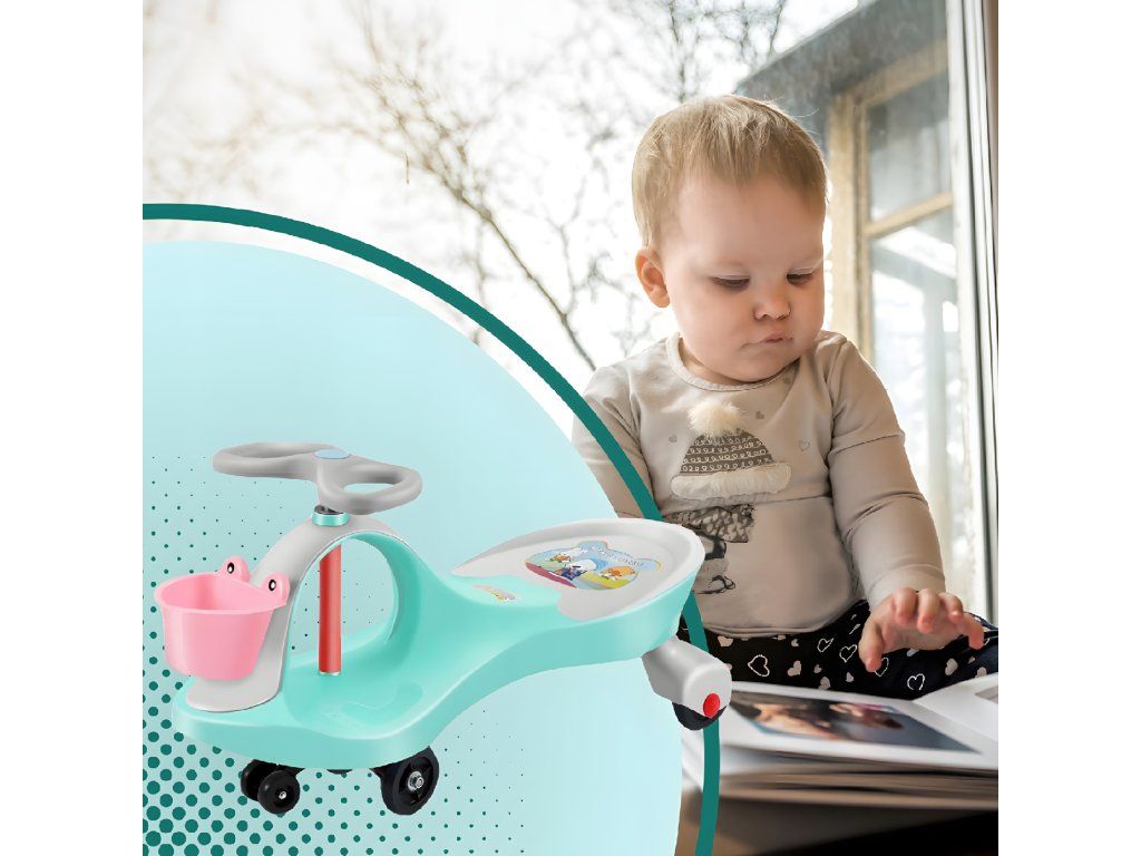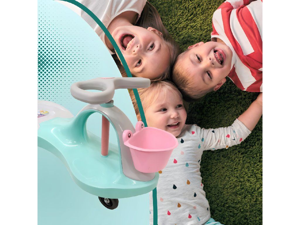 Jízdítko je kombinací odvážného designu a gravitační síly. Díky možnosti otáčet volantem si děti mohou užít dynamický pohyb poháněný jejich vlastními pohyby!