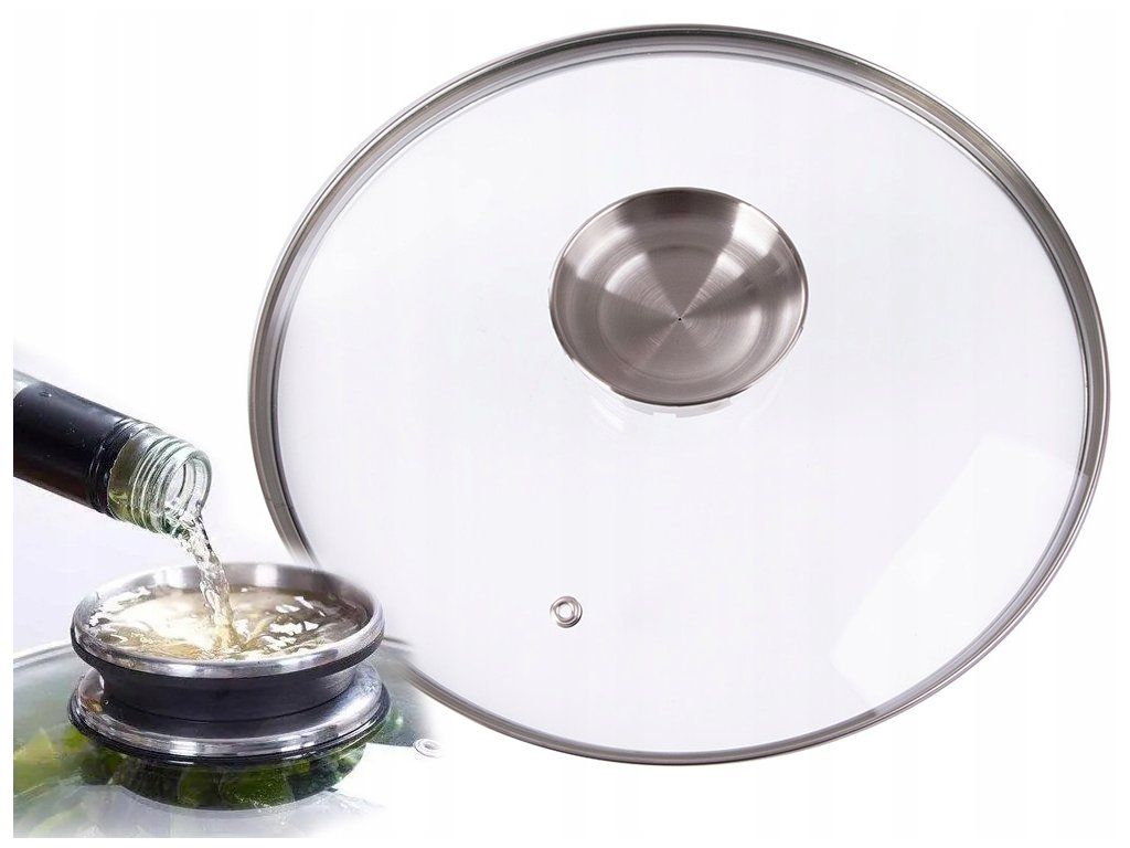 Velká skleněná poklice s ventilem pro uvolňování páry umožňuje kontrolovat tlak a teplotu uvnitř hrnce.
