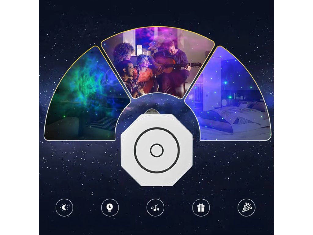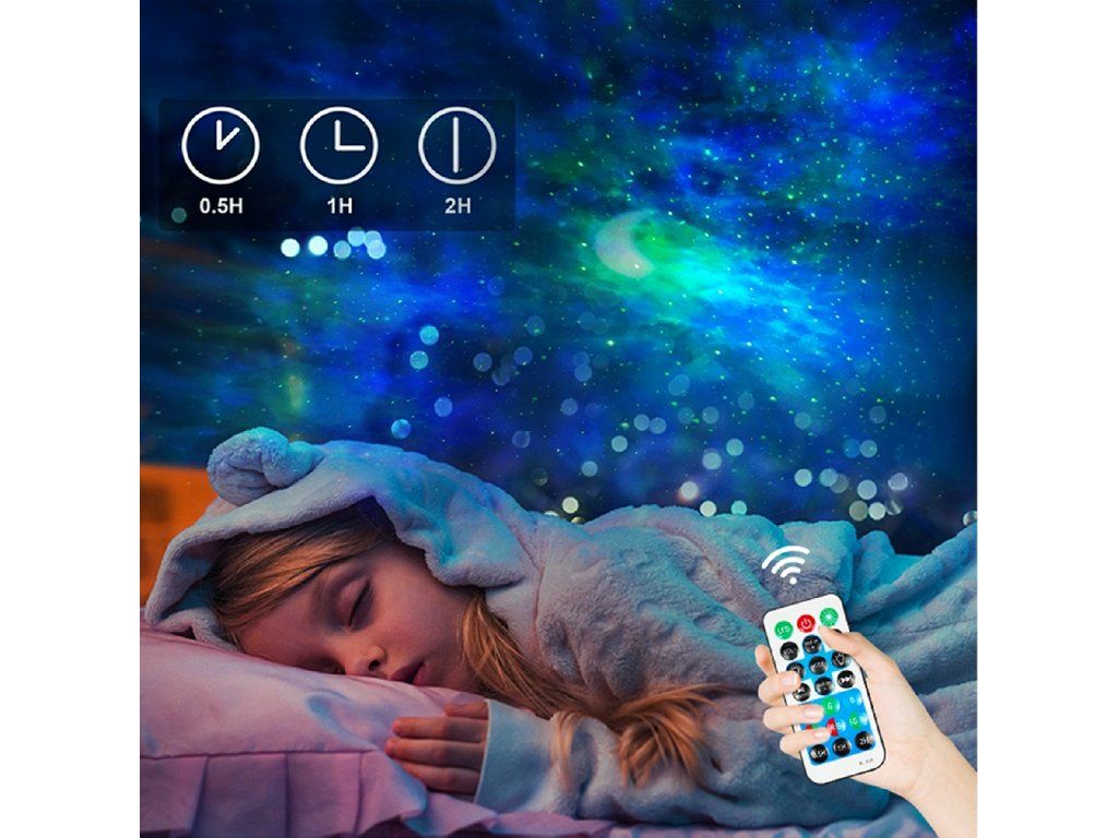 Různé režimy projekce: Od uklidňujících barev po dynamické světelné efekty – ideální pro každou náladu.