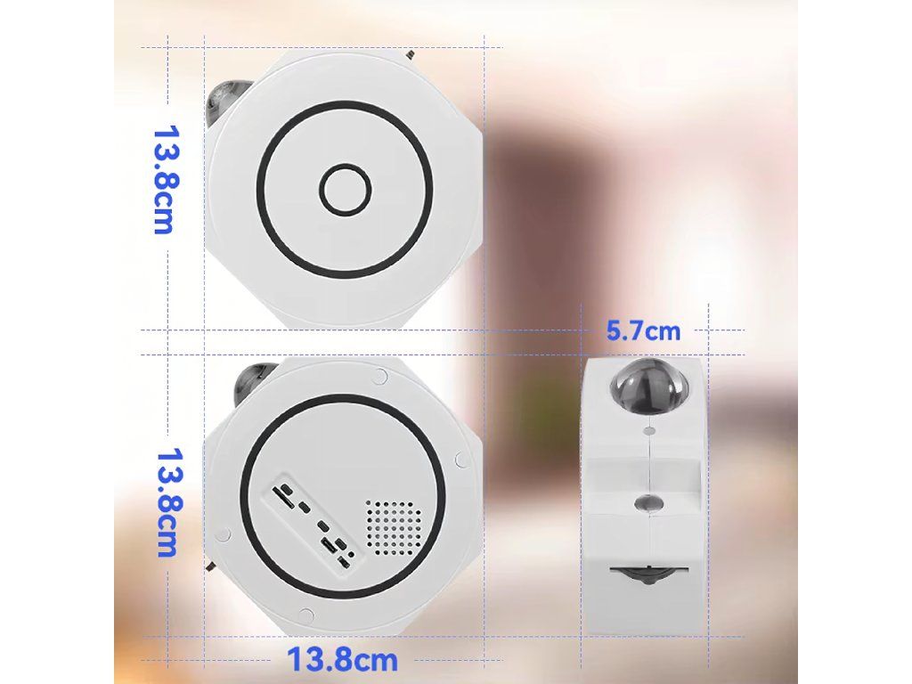 Lehký a kompaktní: Rozměry: 13,8 × 13,8 × 5,7 cm – snadno si ho vezmete na cesty nebo přenesete mezi místnostmi.