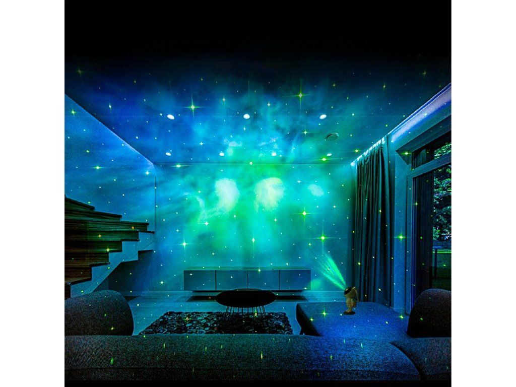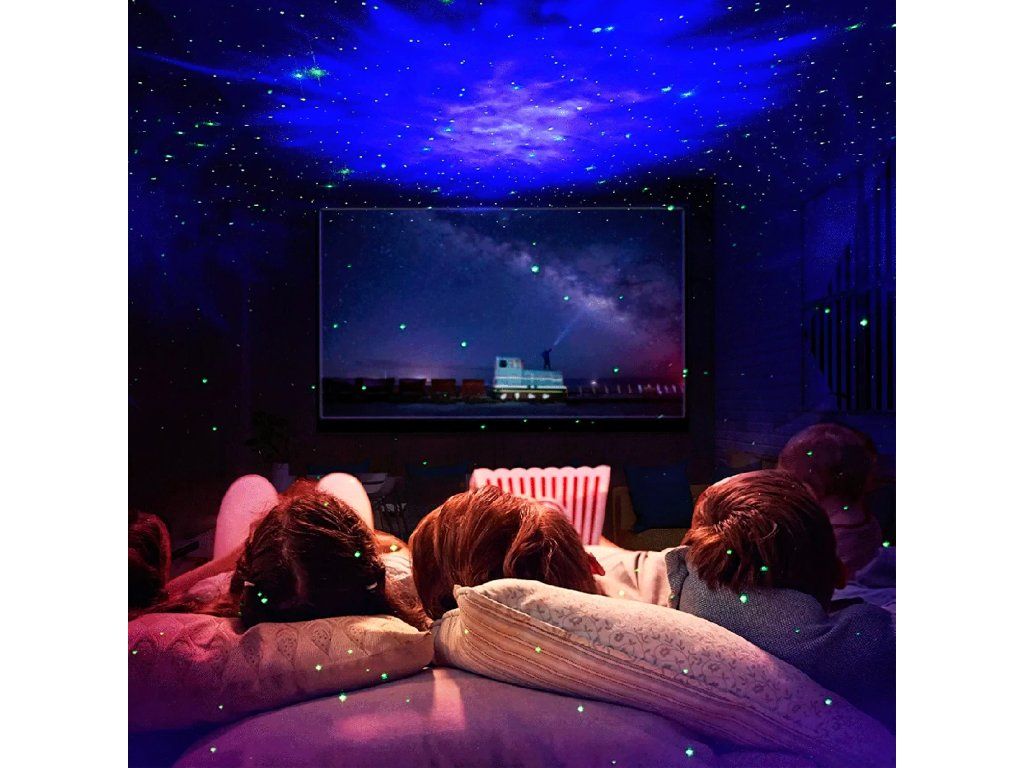8 režimů projekce – dynamické hvězdy, mlhoviny a pulzující barvy.
