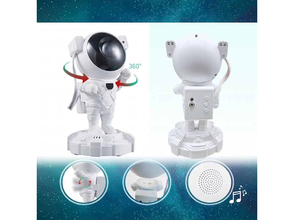 Hvězdný projektor Astronaut Noční lampička Projektor pro děti Vesmír Dálkové ovládání + Bluetooth