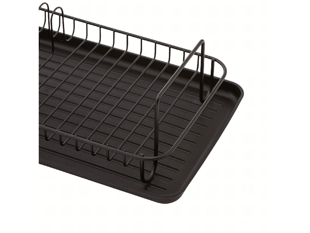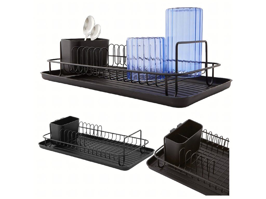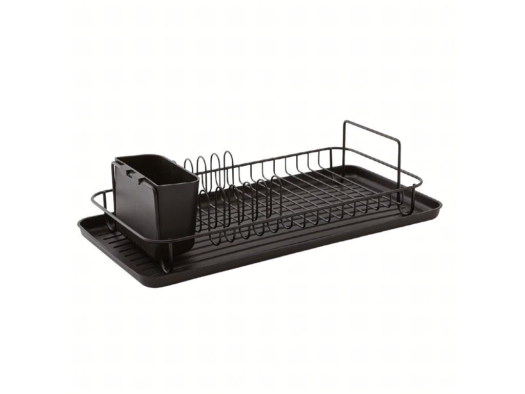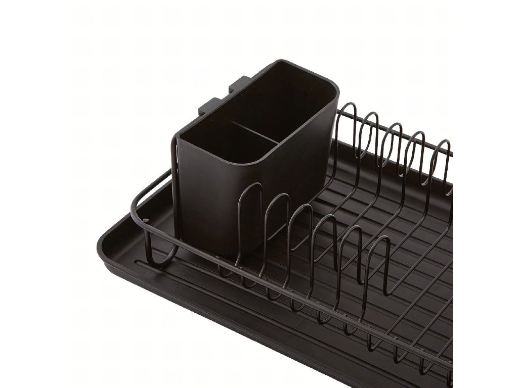 Jednopodlažní stojací sušič nádobí s odkapávačem, černý, velký zásobník