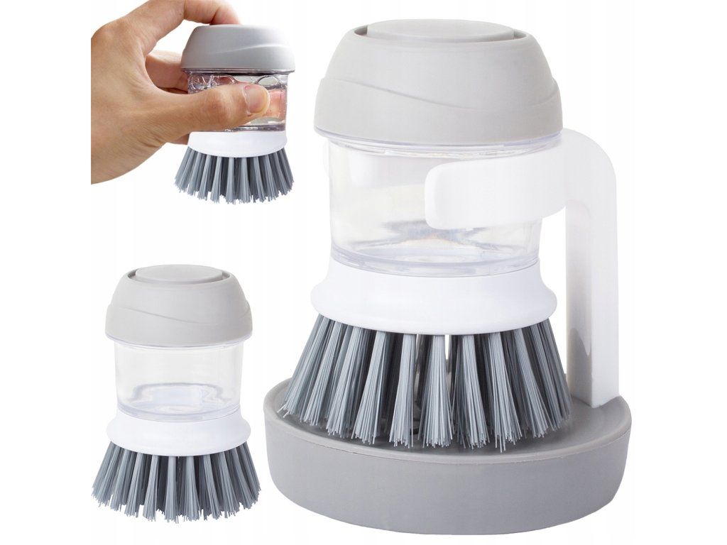 Kartáček s dávkovačem je ideální pro použití v každé domácnosti. Je určen k drhnutí hrnců, pánví a dalších. Pomůže vám snadno odstranit nečistoty, připáleniny apod. Díky tekutému disp enseru nepřijdete do přímého kontaktu s chemickými látkami, což je vhodné pro alergiky.