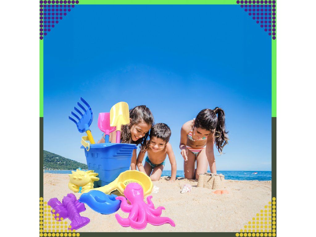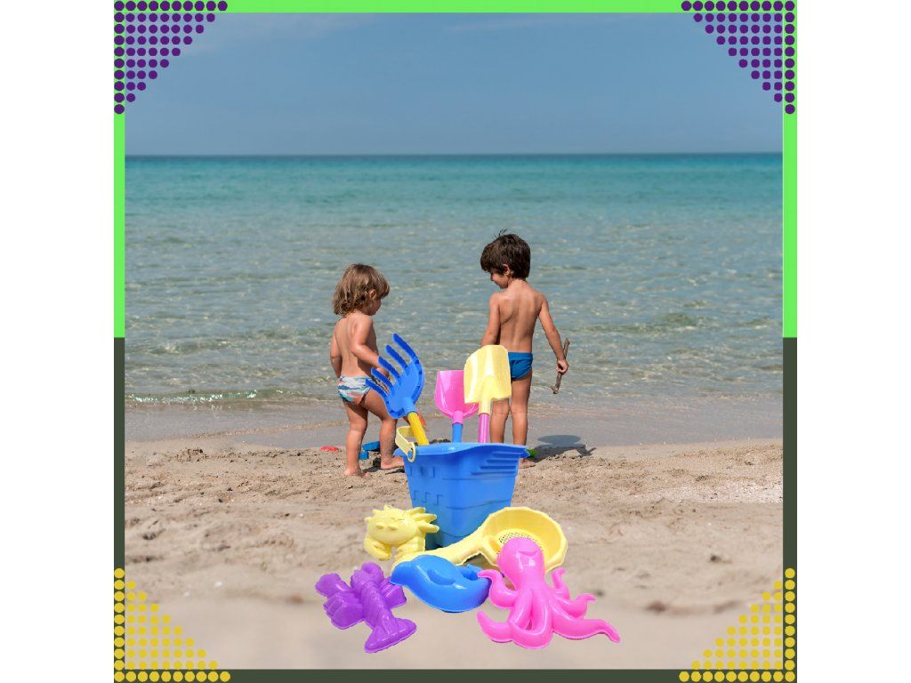 ️Kbelík s 9 ks plážových a zahradních hraček do pískoviště pro děti️