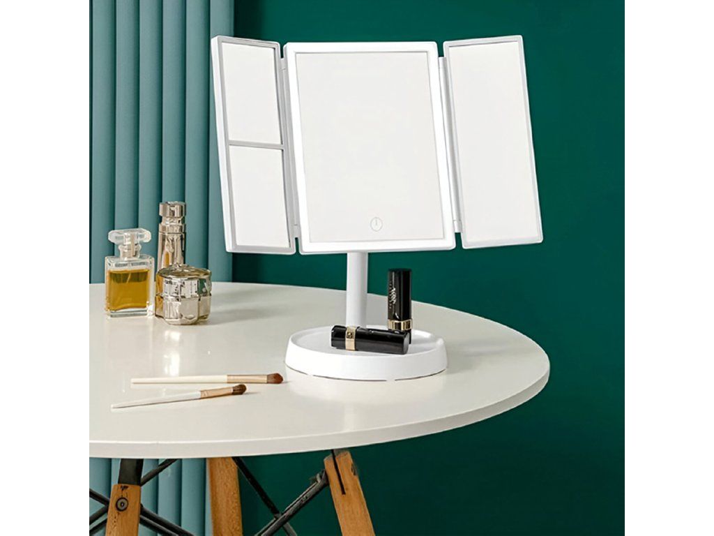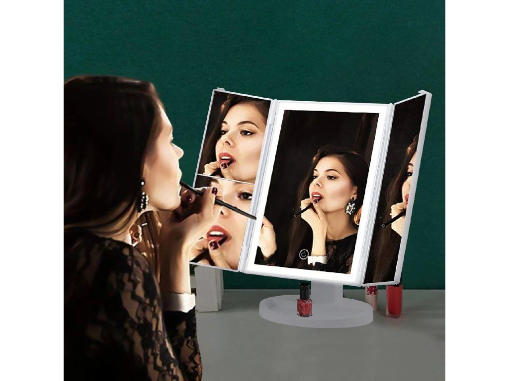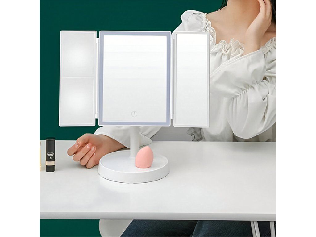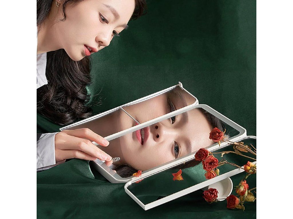 Kosmetické zrcátko s LED osvětlením, skládací zrcátko na líčení x3