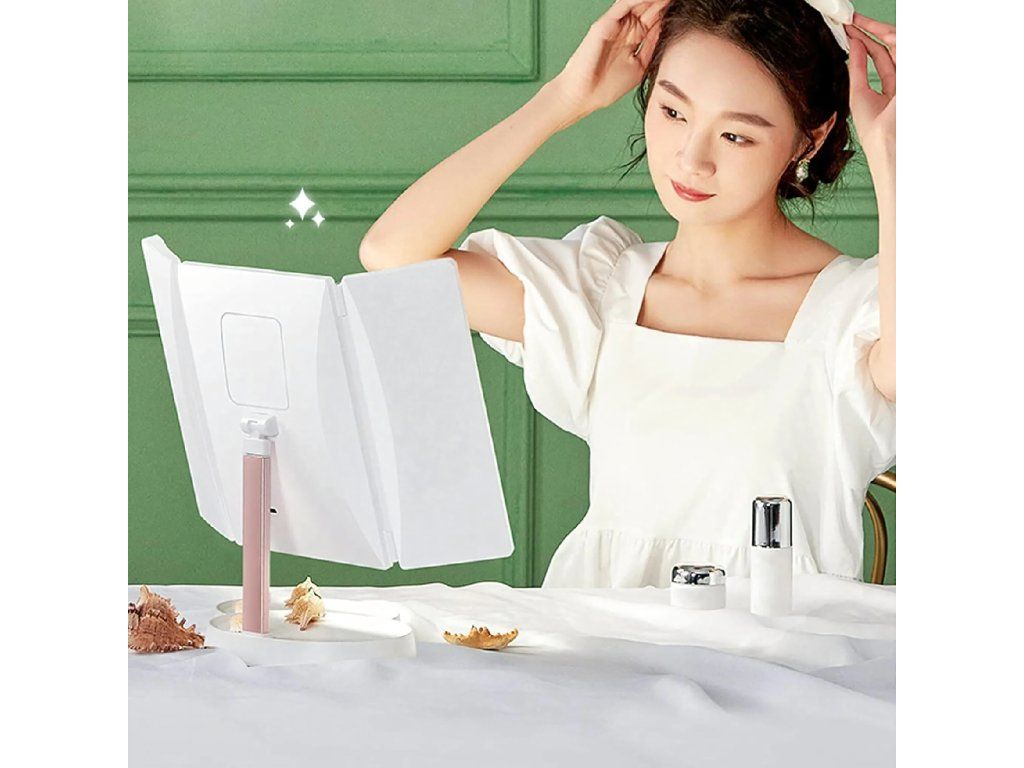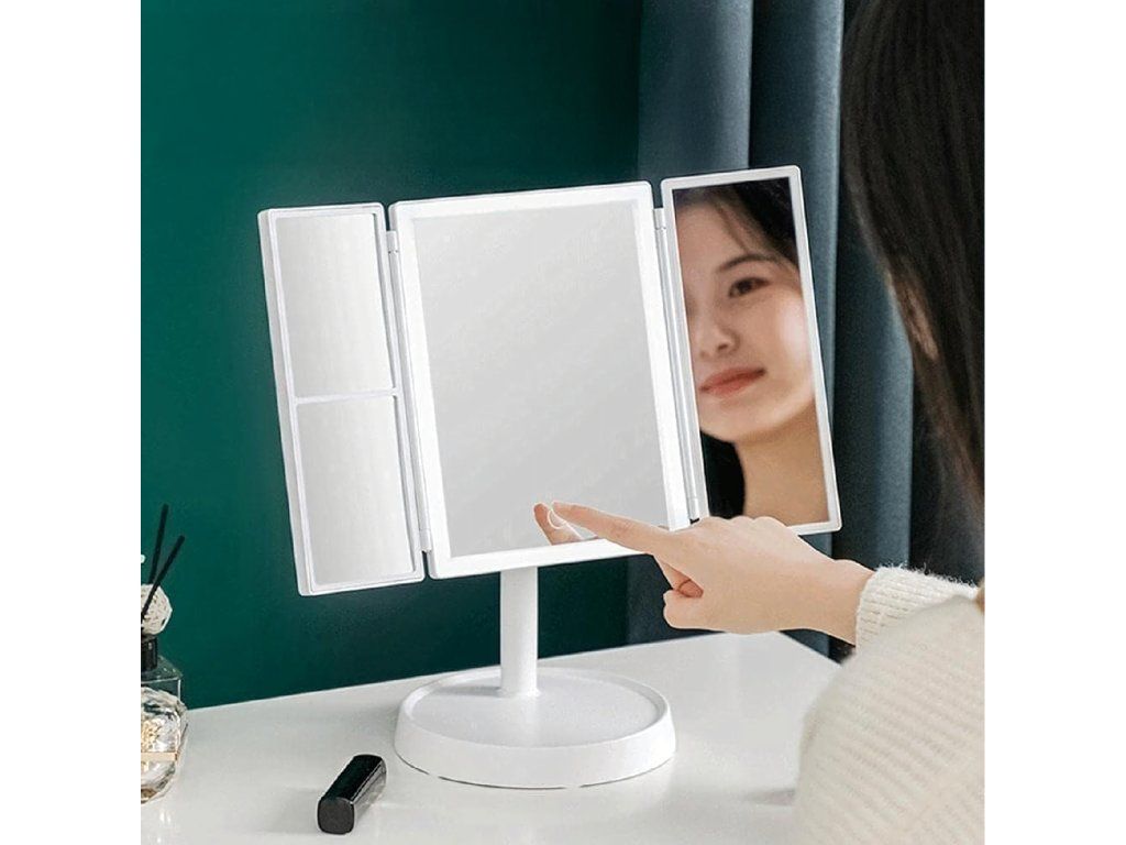 Kosmetické zrcátko s LED podsvícením, skládací zrcátko na líčení x3