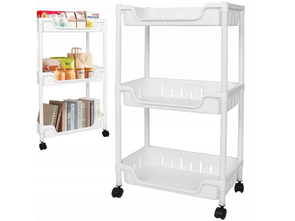 Pojízdná knihovna se třemi prostornými policemi je praktickým a všestranným řešením, které lze použít v kuchyni, koupelně, kanceláři nebo obývacím pokoji. Díky kolečkům lze knihovnu snadno přemisťovat, takže je mimořádně pohodlná pro každodenní používání. Kromě toho je vybavena dvěma háčky, které zvyšují funkčnost a umožňují zavěšení drobných předmětů, jako jsou látky, tašky nebo kuchyňské doplňky.