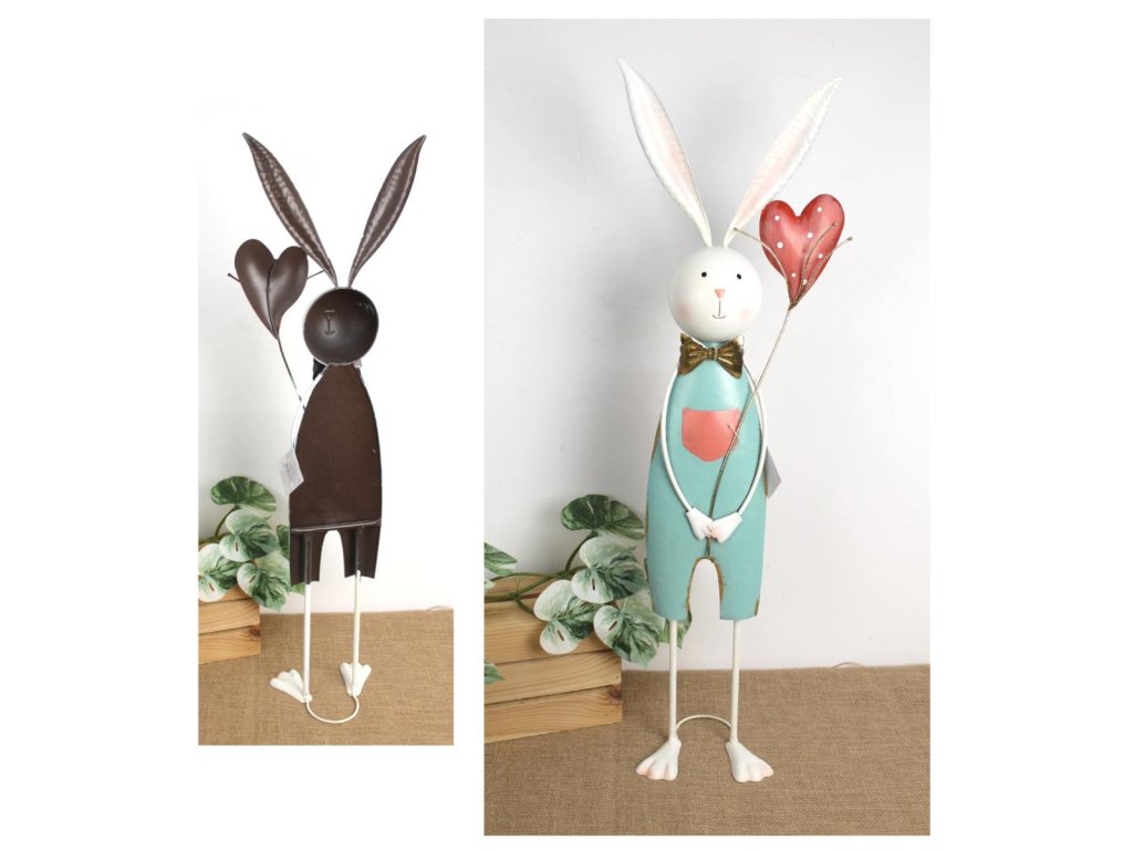 Kovová figurka PAN KRÁLÍK SE SRDCEM výška 78 cm