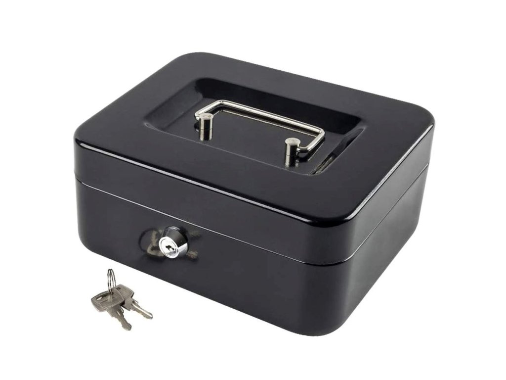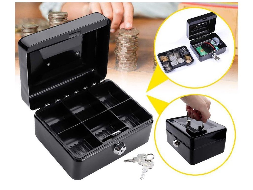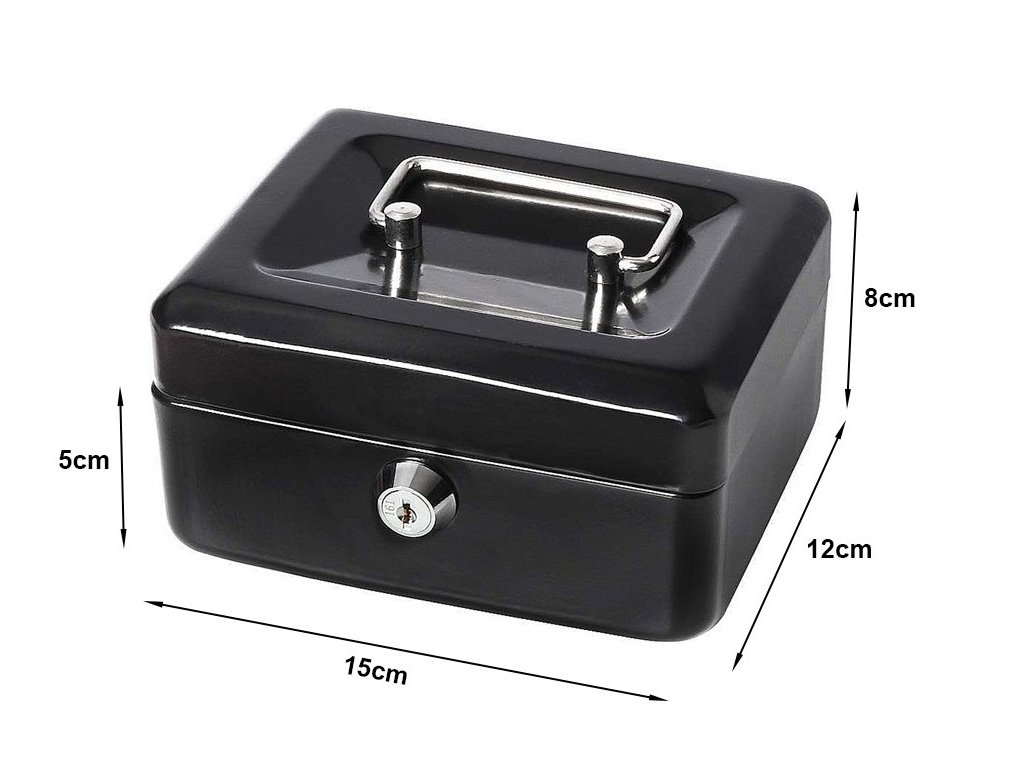 Kovová krabička je ideální pro uložení peněz nebo jiných cenných předmětů, jako jsou šperky nebo dokumenty.