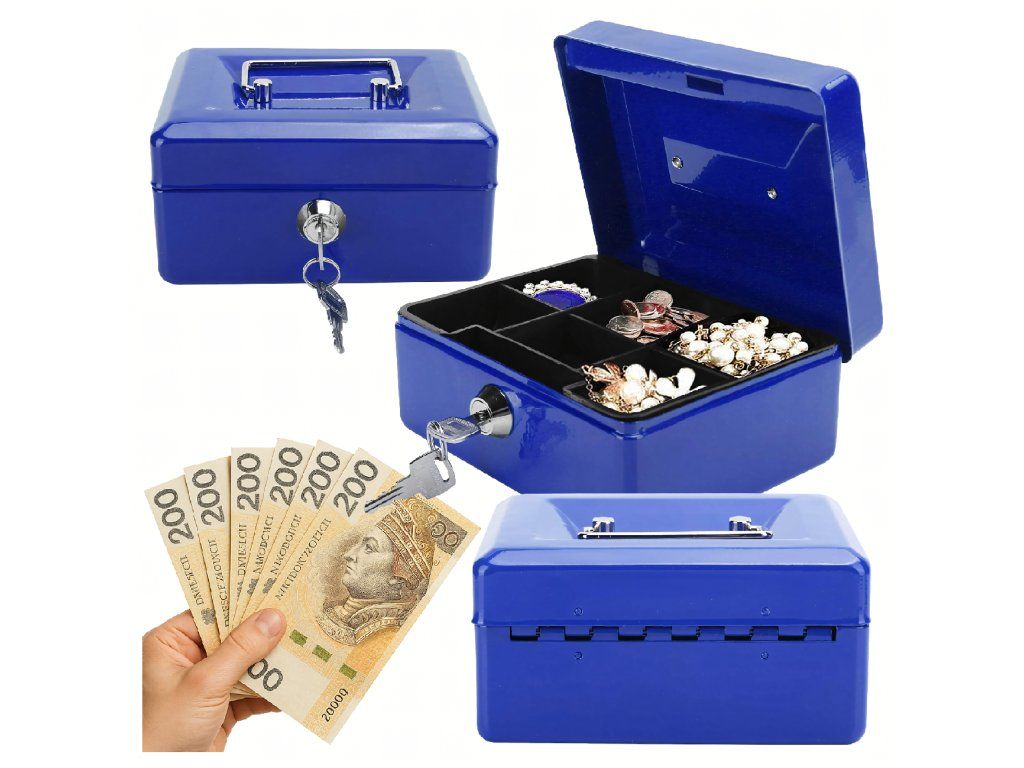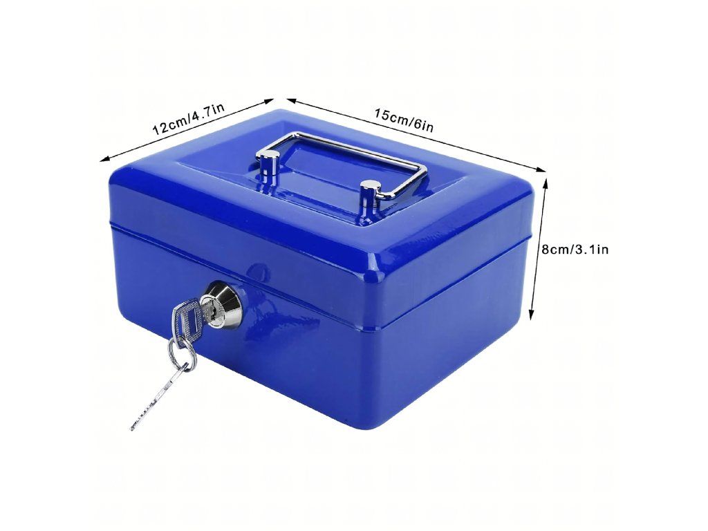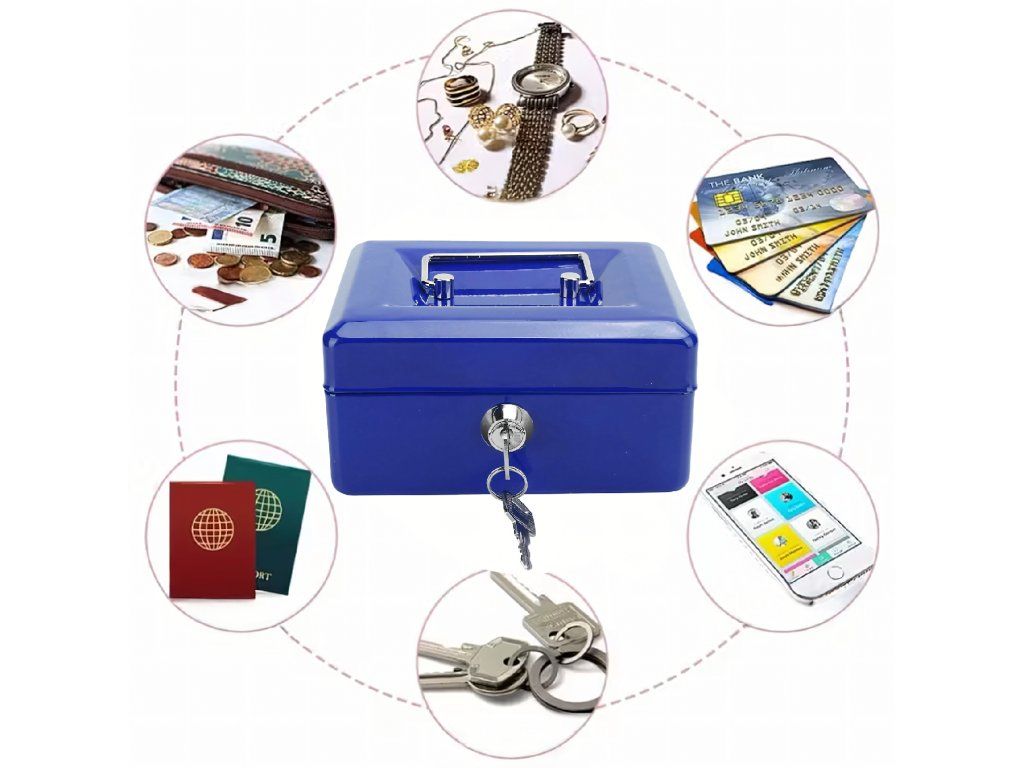 Kovová pokladnička na peníze, mince, bankovky, dokumenty, trezor, klíče